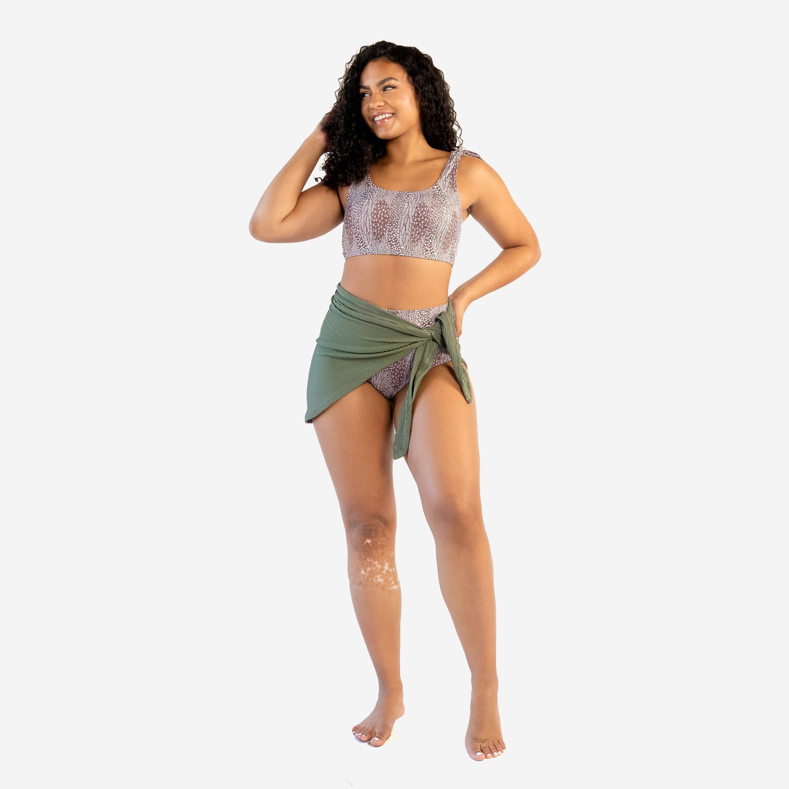 The Sarong is a cover wrap that ties at the waist and features a stretchy, textured fabric. Light-weight and so comfortable, you'll love wearing it around your swimwear.