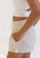 Discover our Knock Out Shorts - a perfect blend of style, comfort, and function. With a secure thick waistband and customizable drawstring fit, these shorts stay put during workouts. They feature a panty liner for extra protection and spacious side pockets for your essentials. Boost your active lifestyle in style and comfort.