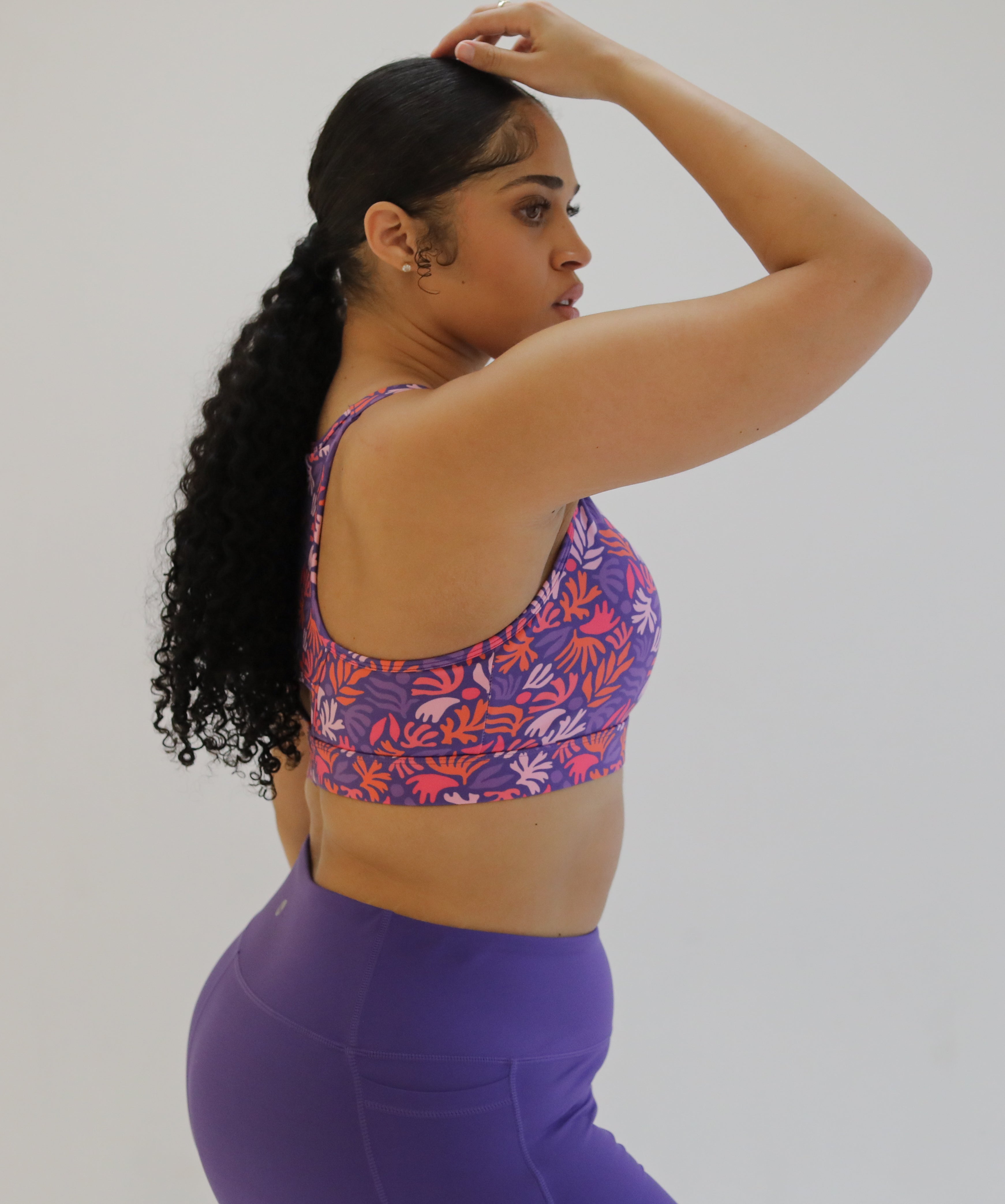 The Flex Adjustable Bra offers medium support, with adjustable clasps and straps for that perfect custom fit. Made from soft, lightweight material, it ensures comfort and security during workouts. Mesh lining boosts breathability, while removable padding lets you adjust support. A back pocket adds storage for small items, and the stylish scoop neckline makes this versatile bra ideal for various activities. (This 2.0 version has minor updates for a better fit.)