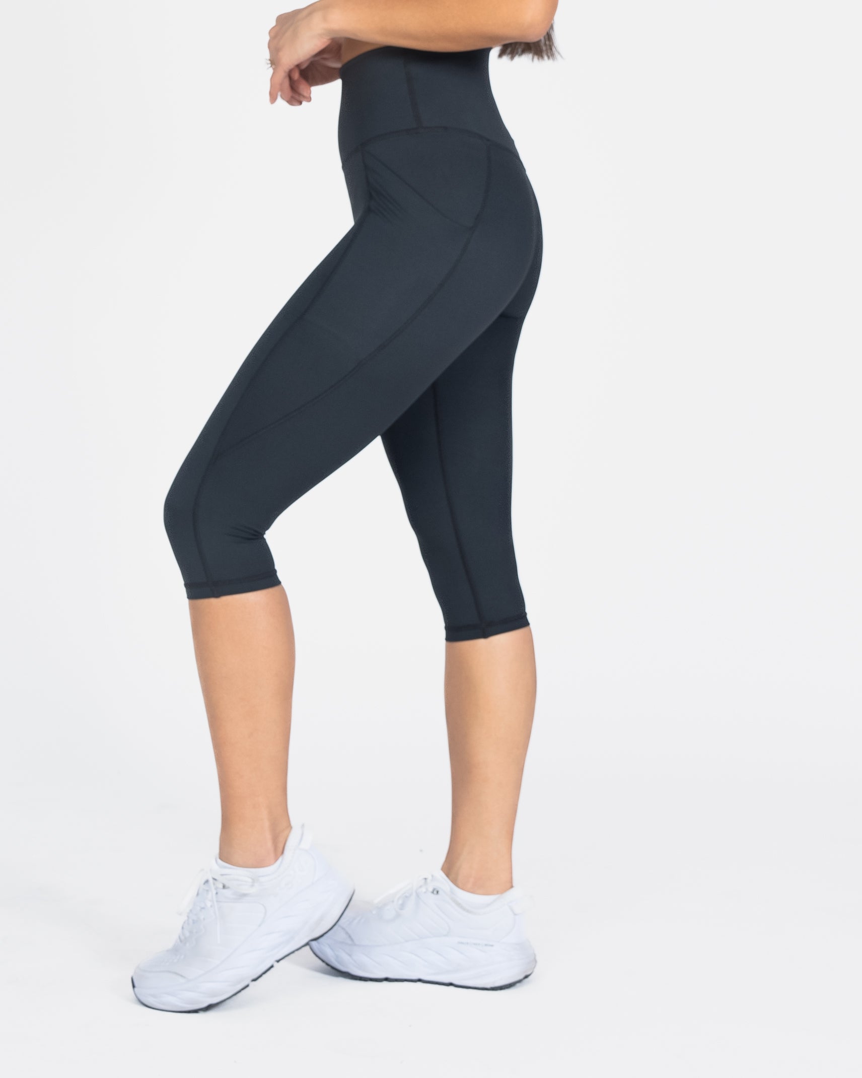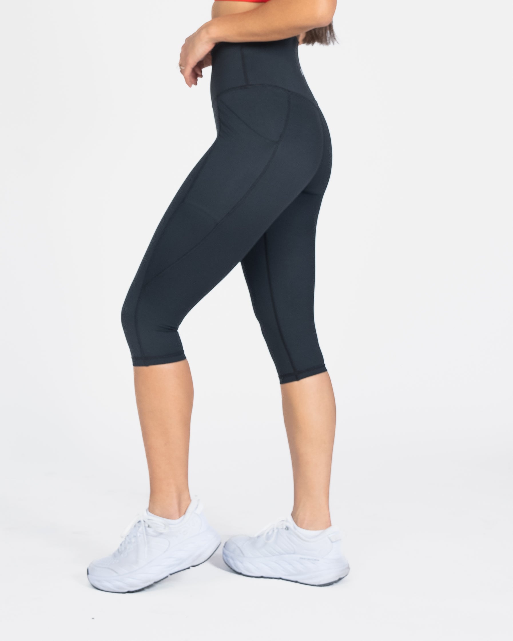 The Lux Pace Crops are a great all-around pant and a customer favorite. The high rise makes for a flattering fit, being high enough to cover your belly when you're on the move. They have side pockets for large phones, and a seamless waistband that won't dig into your skin. Wear to the gym or casually, - they are at home anywhere.
