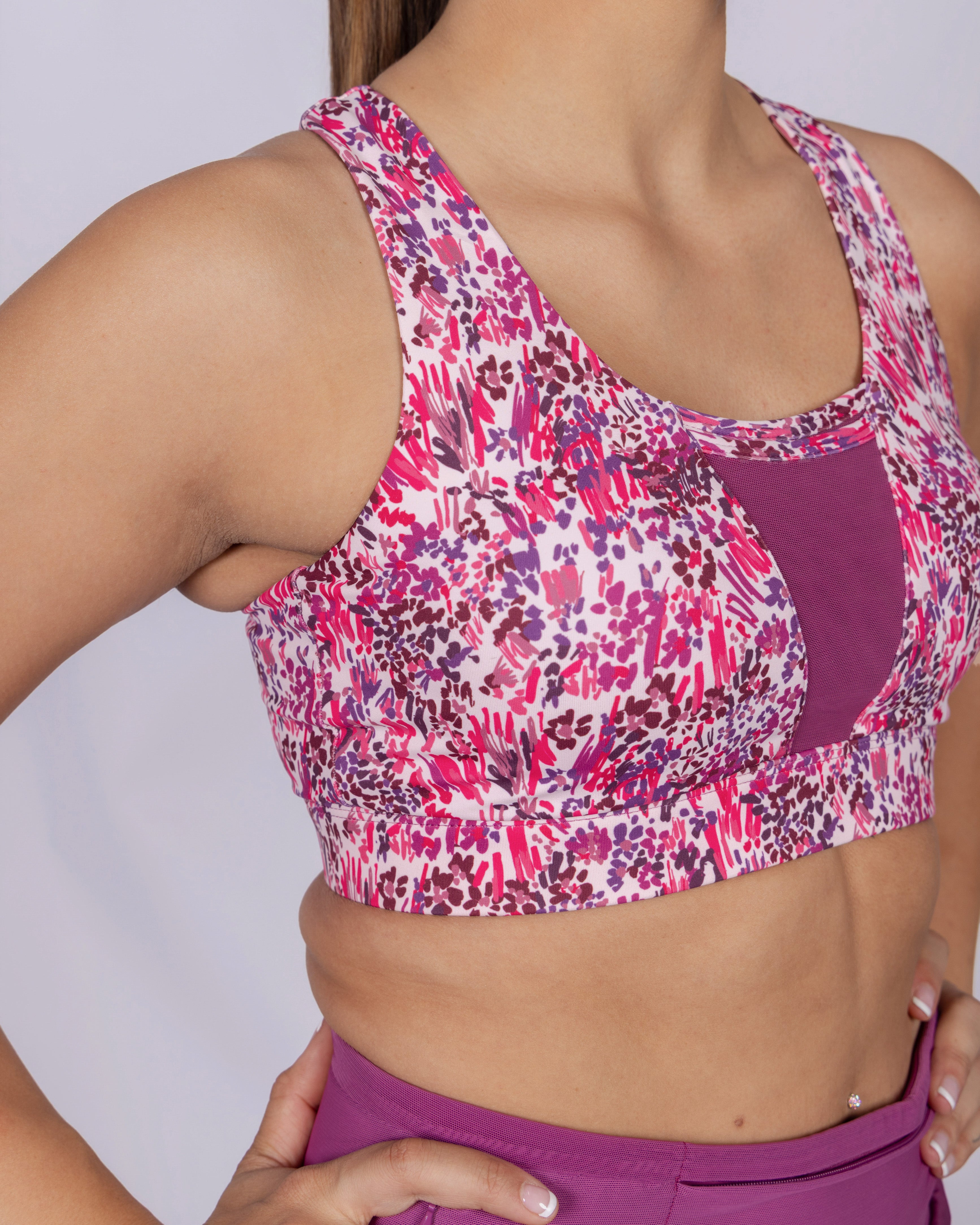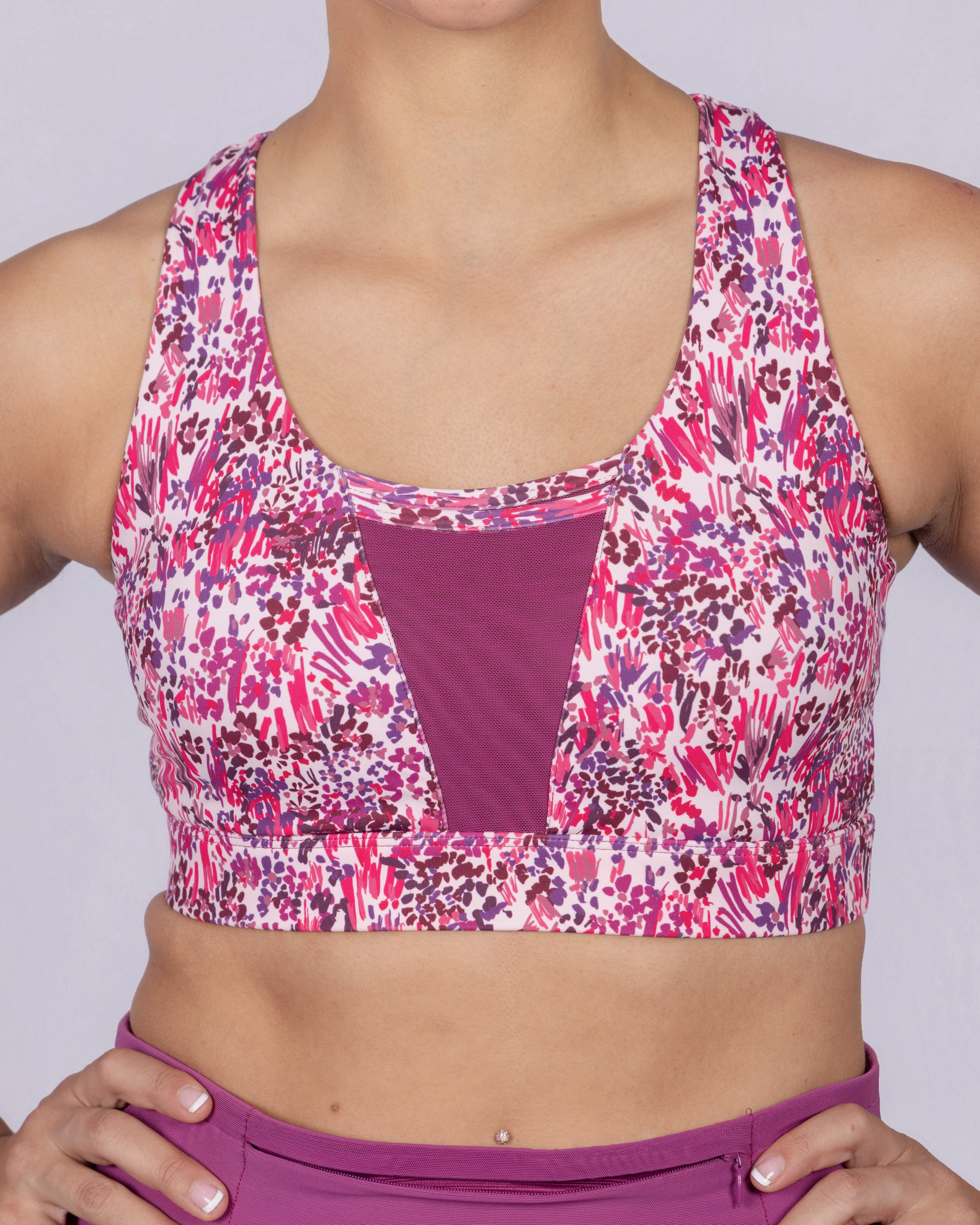 Dual Stash Sports Bra - Boysenberry Flourish