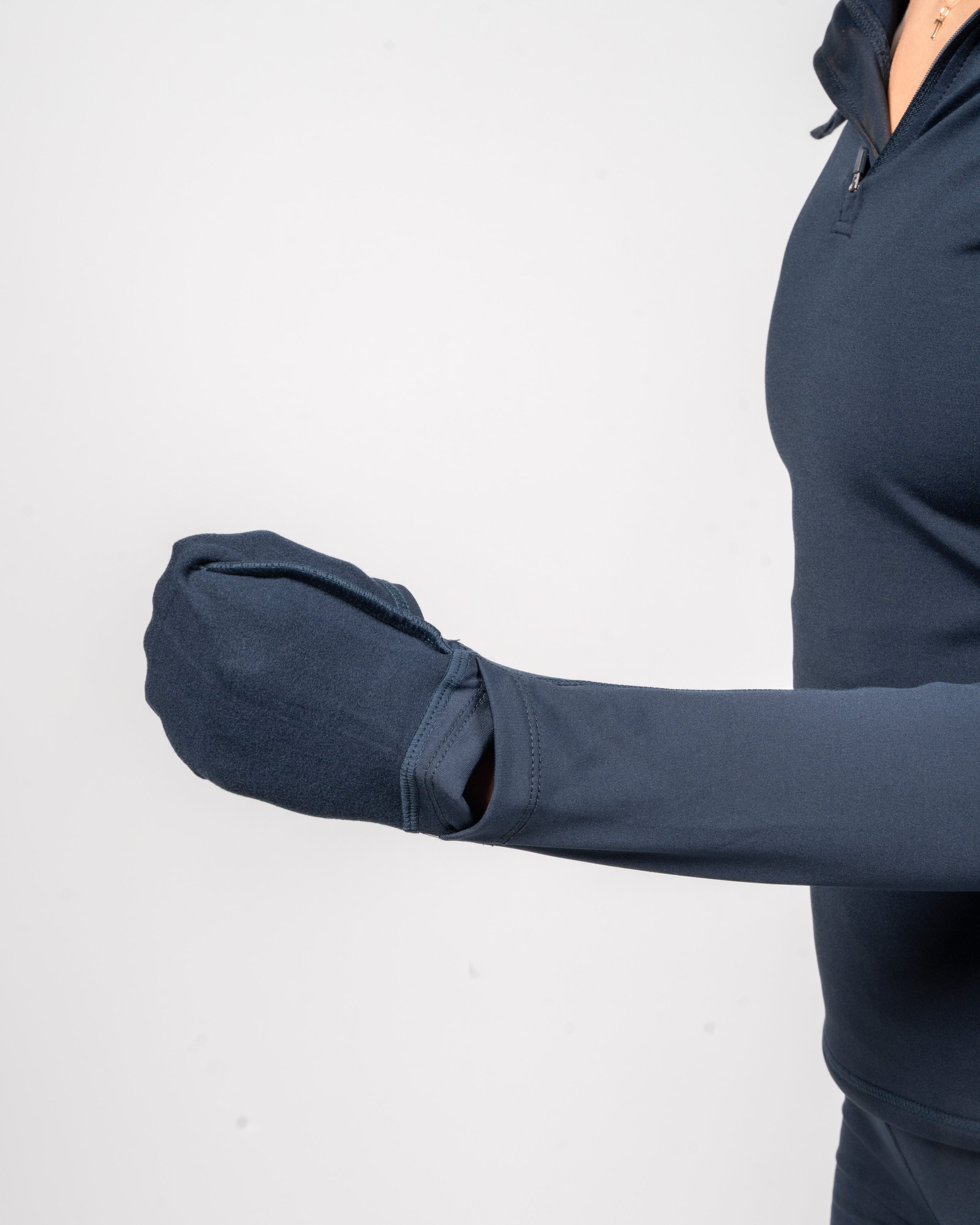 Built for warmth, made for movement. The Thermal Quarter Zip features a soft fleece lining for cozy comfort and insulation without bulk. Thoughtful details—like thumbholes, fold-over hand covers, and a watch hole for easy access, make it perfect for cold-weather runs or outdoor workouts. A fleece-lined kangaroo pocket and hidden zippered pockets keep your essentials secure, while the wide back pocket adds extra storage on the go. Functional, flattering, and ready for any adventure.