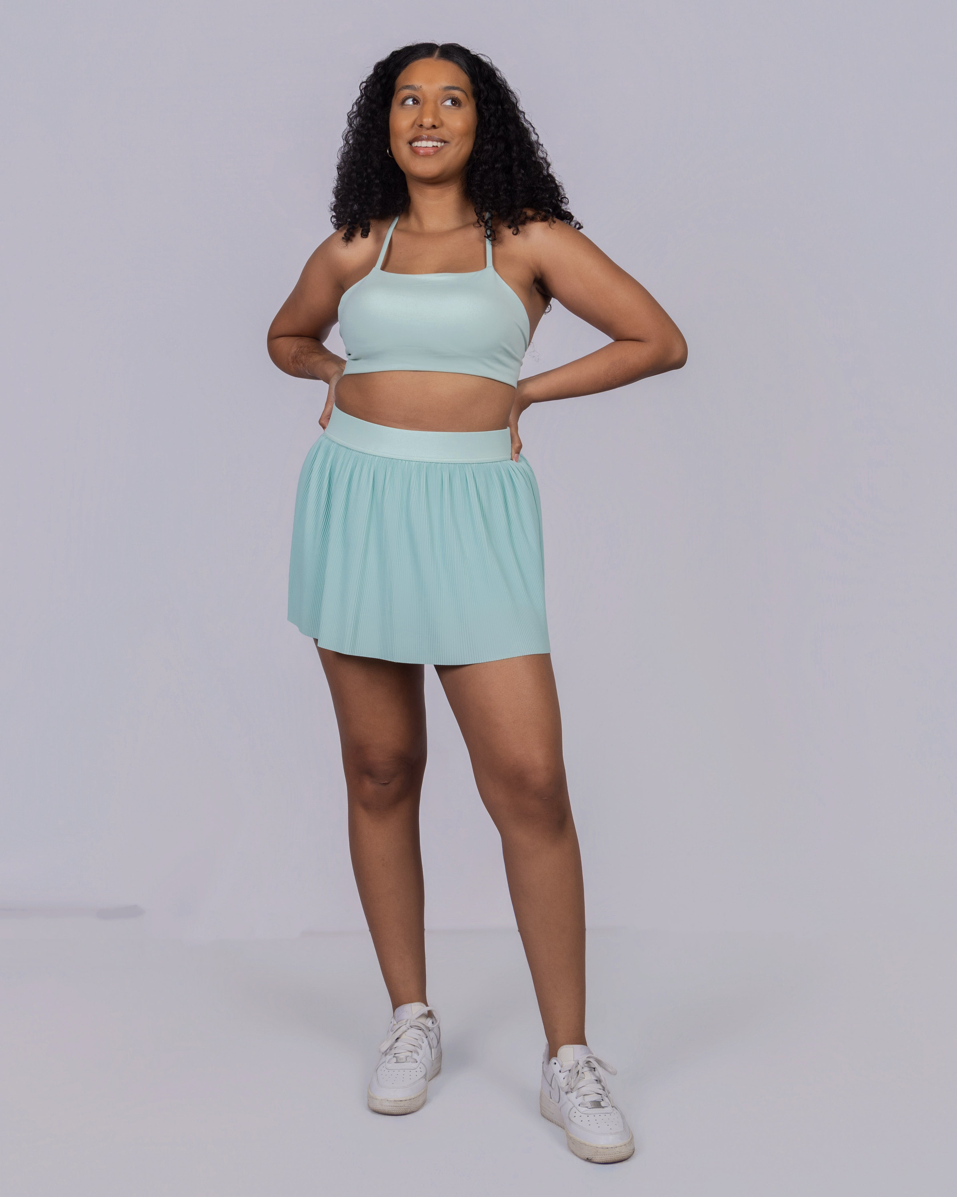 Sporty, with a polished edge. The Lux Micropleated Skort combines a smooth, supportive Lux waistband with built-in shorts for comfortable, stay-put coverage. A lightweight woven micropleated layer adds movement and a more elevated finish—so you can wear it just as easily off the court as on it.