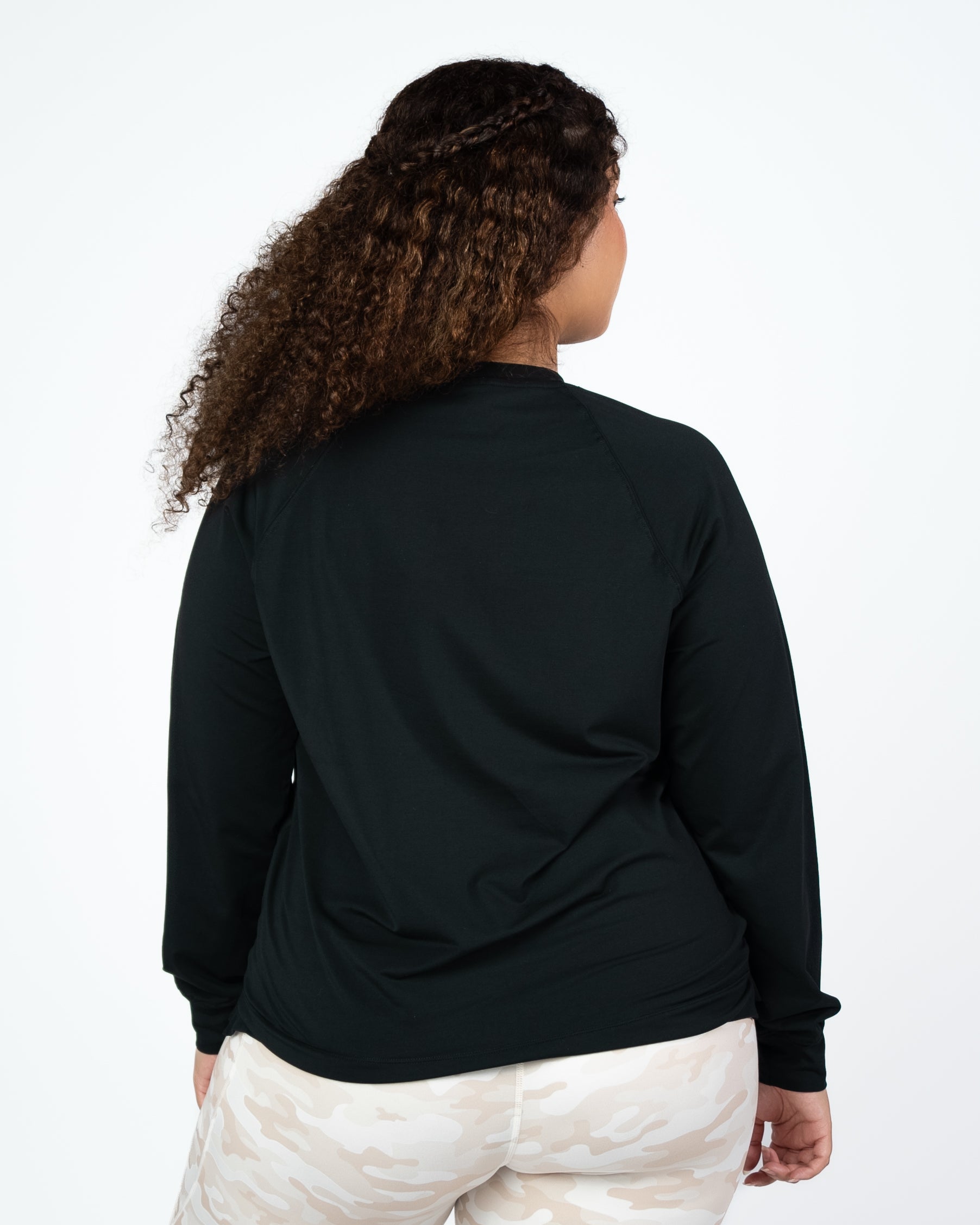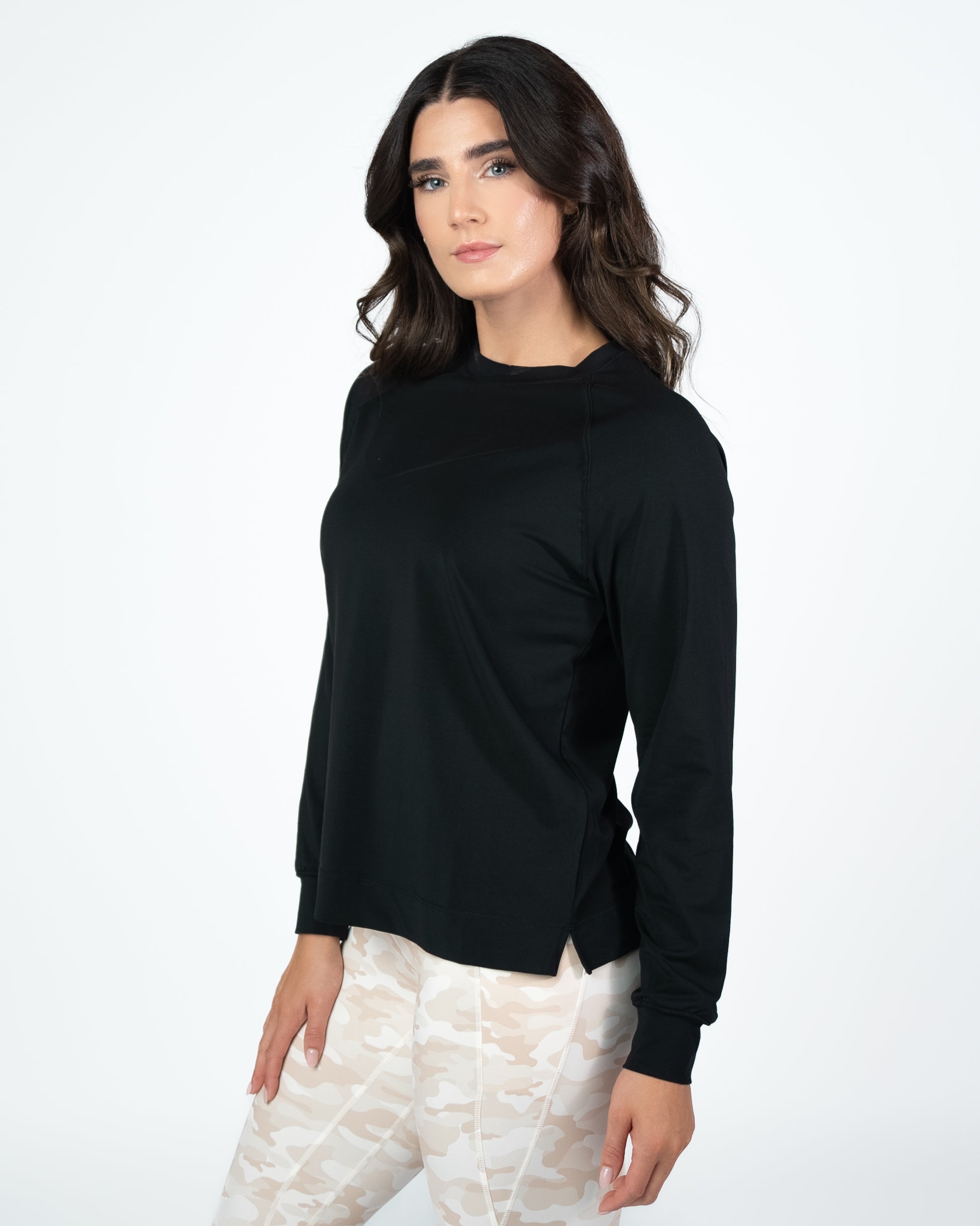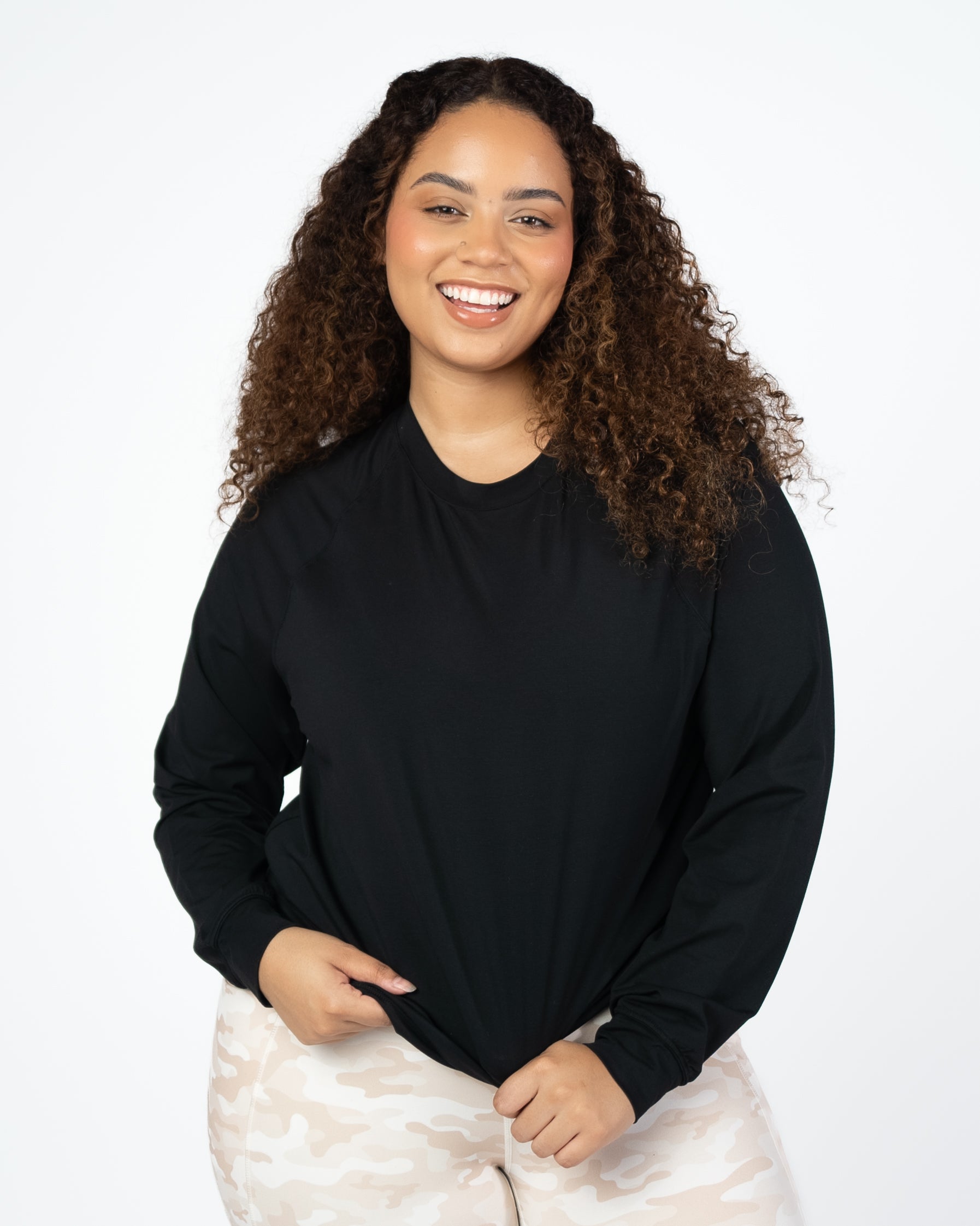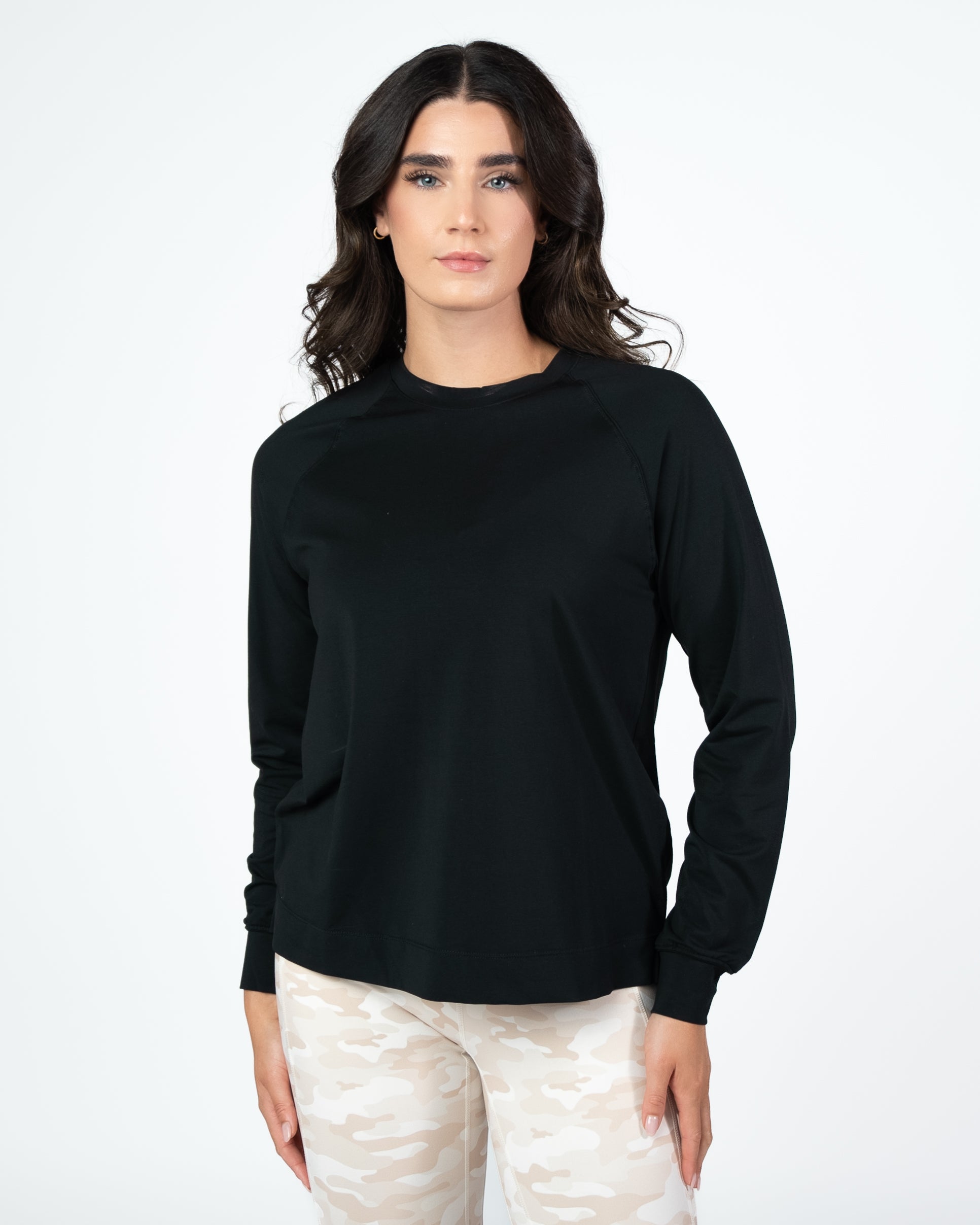 Our Infinity Long Sleeve is an easy-fitting active tee in our drapey, cool, and comfortable cotton, modal fabric. Designed with on-trend raglan sleeves, a crew neckline, and a straight hem this is the perfect piece to wear alone or layer infinite ways all season long.