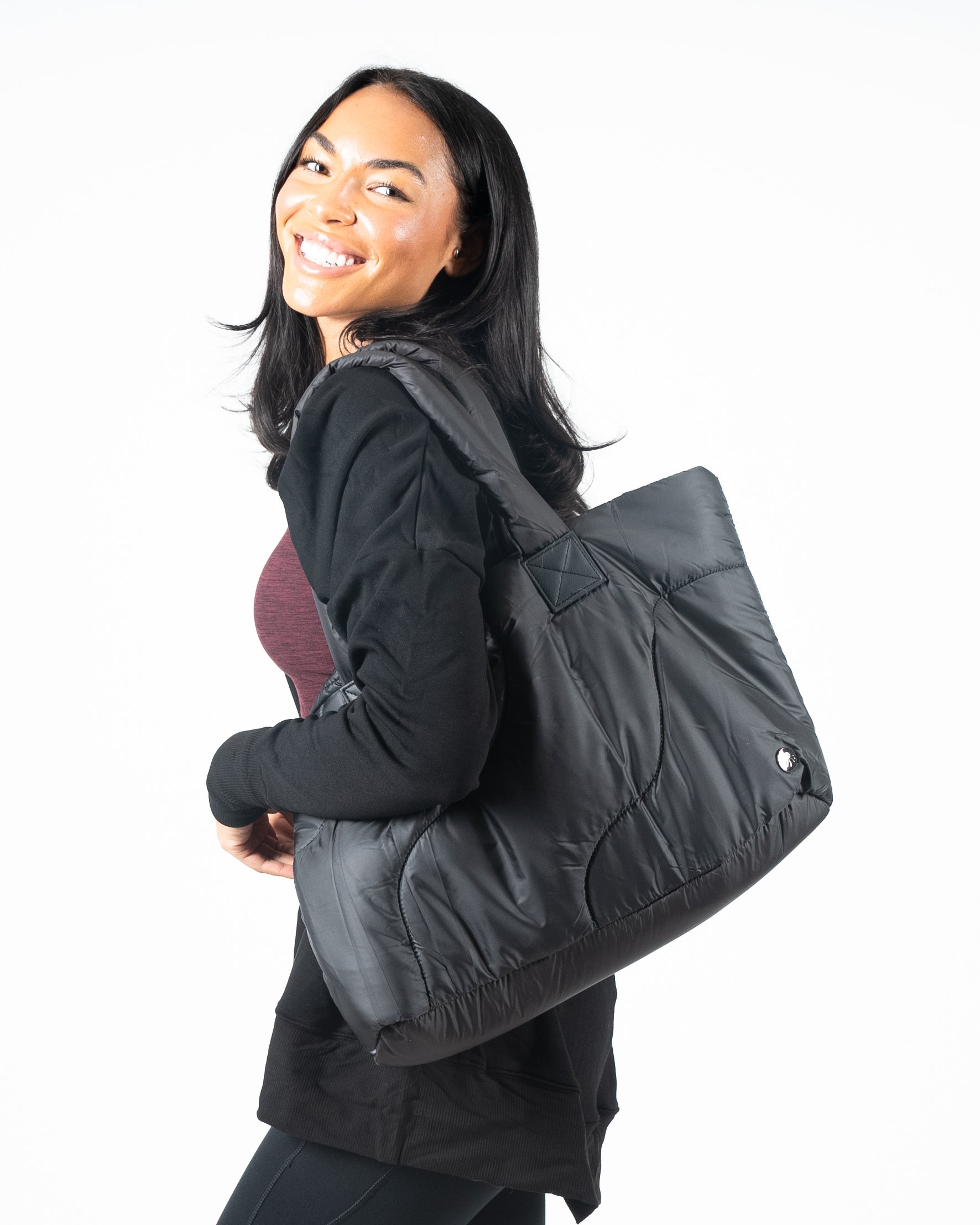 To and from the gym, the office, and everywhere in between. Carry it all in this essential, free-form bag designed in a lightweight, puffer fabrication. This unstructured tote is packed with features from fixed-length shoulder straps to interior pockets for all your necessities.