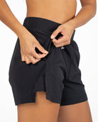 The Excursion Shorts, crafted from a lightweight and breathable nylon/spandex fabric, are designed for both comfort and practicality. Featuring an elastic waistband for a secure fit, these shorts include two front pockets with zippered compartments inside for safely storing smaller belongings. The looser fit around the thighs and longer length provide excellent coverage, while side slits and a step hem enhance mobility. Perfect for any adventure, these shorts offer functionality and style without a built-in short or liner.
