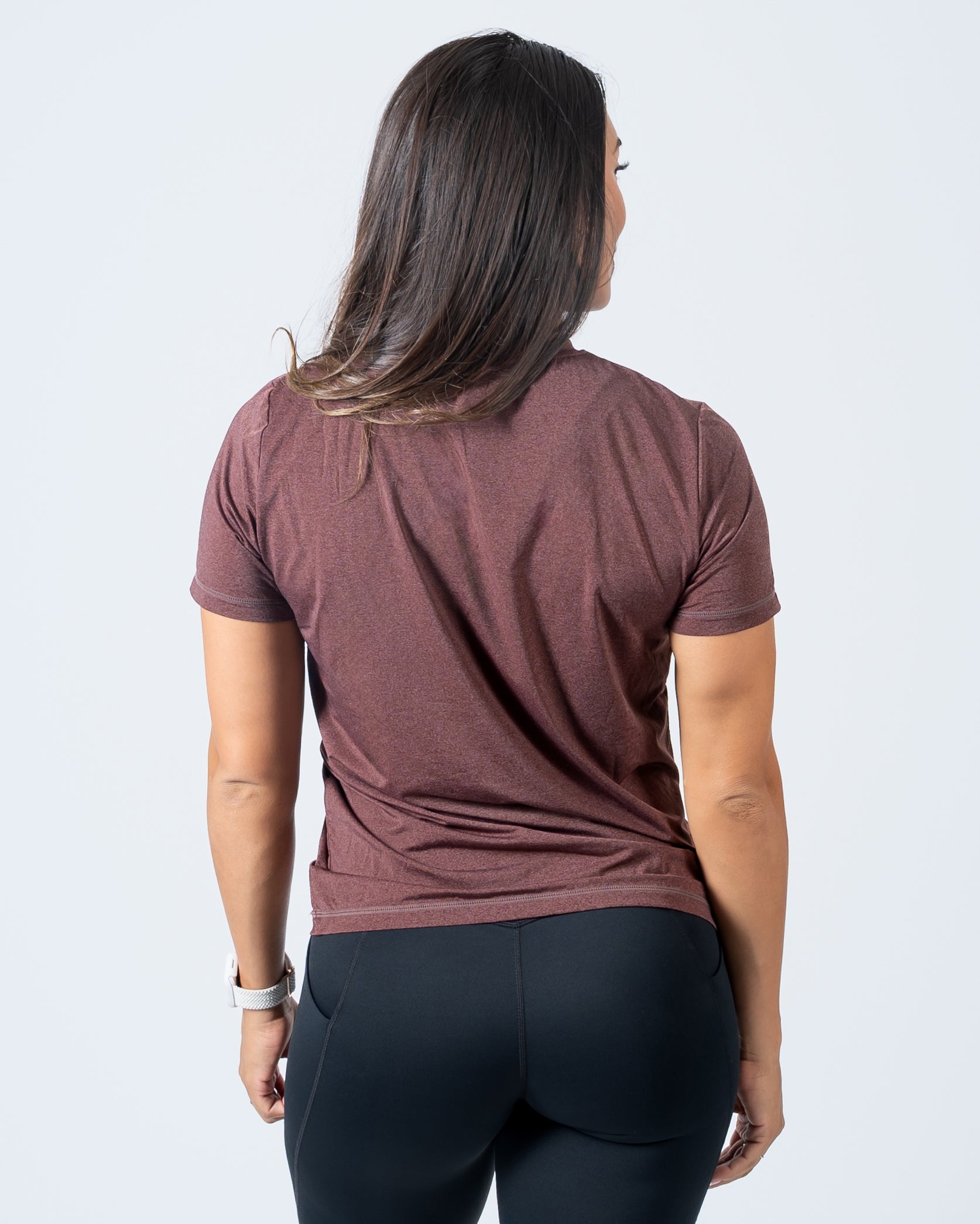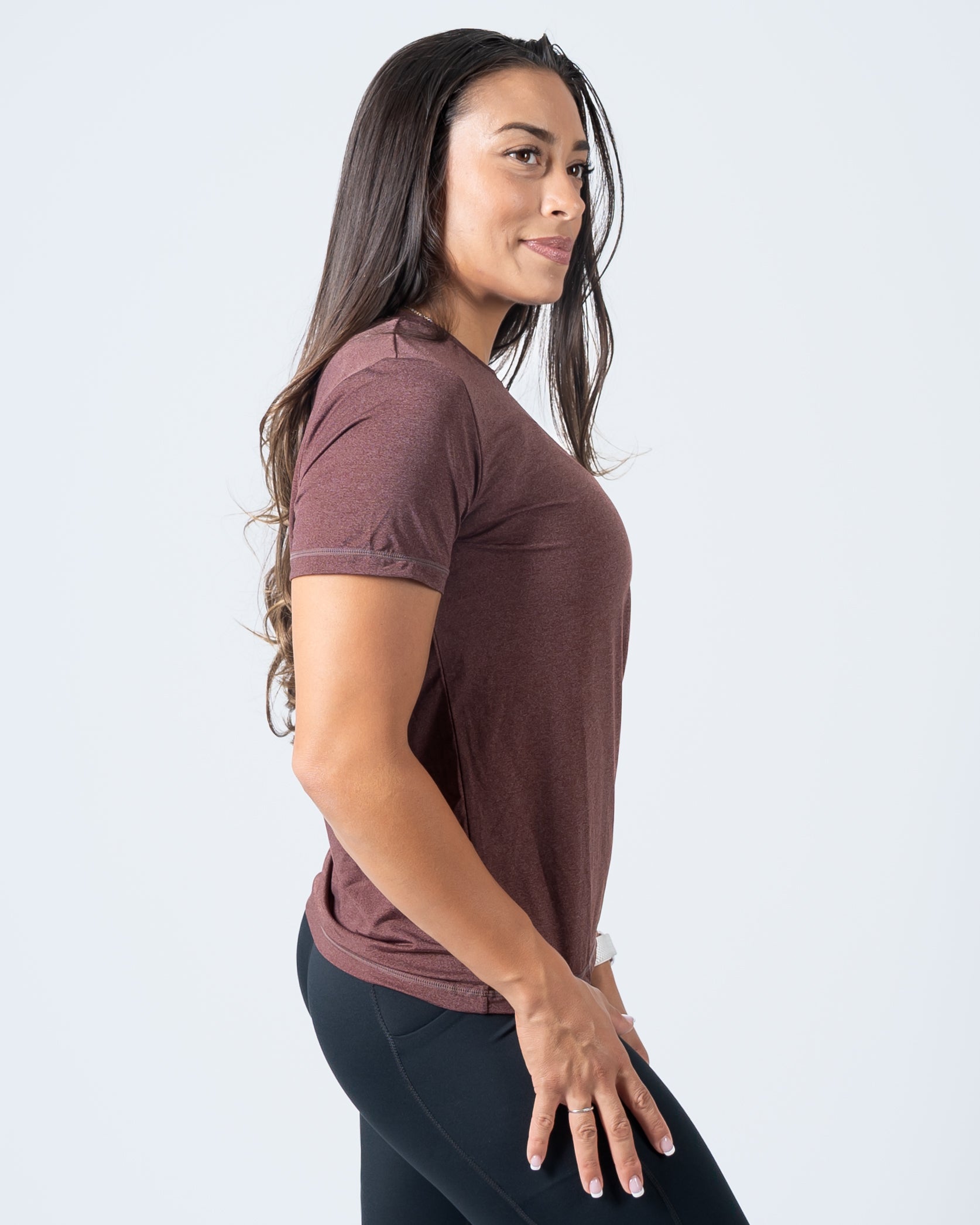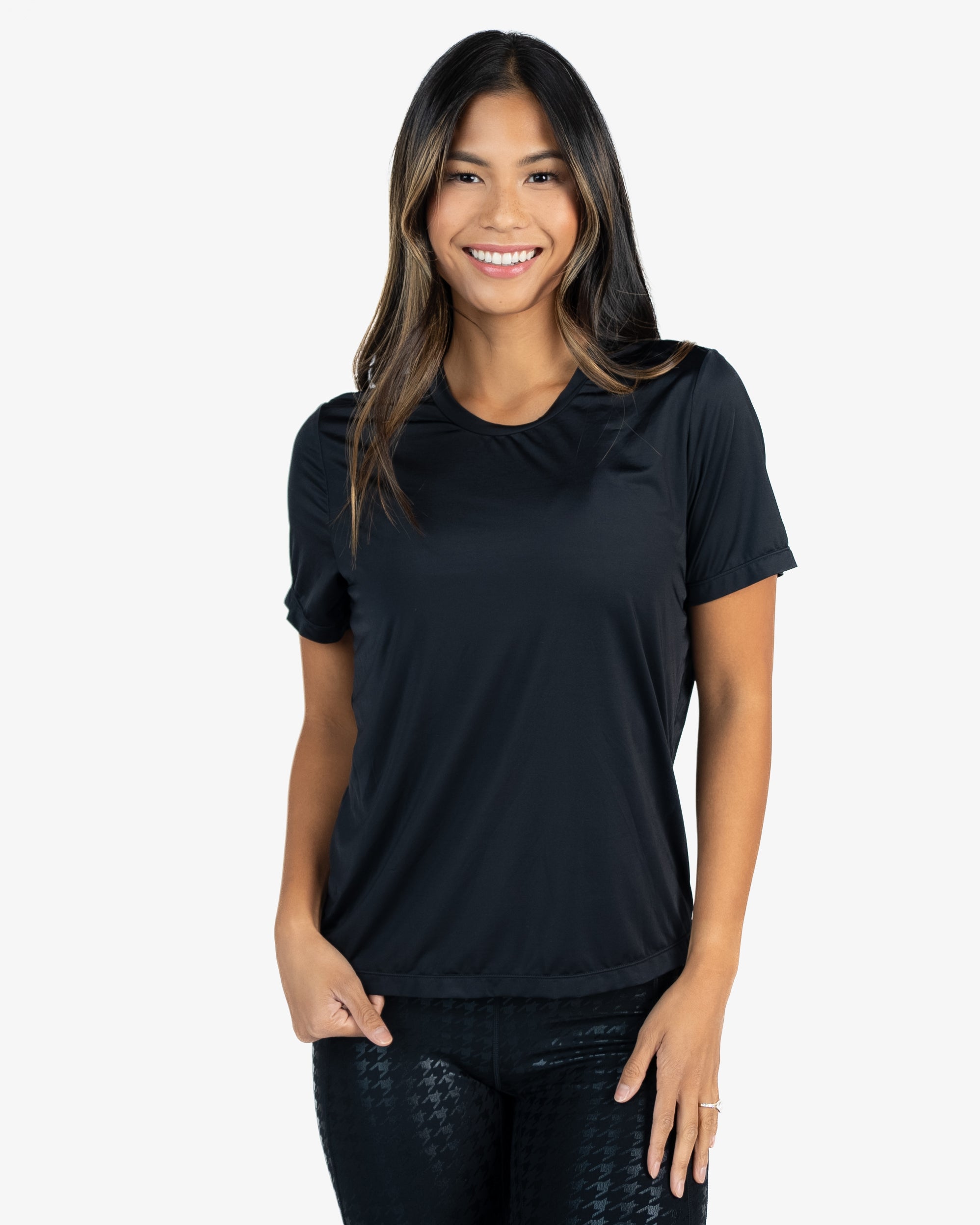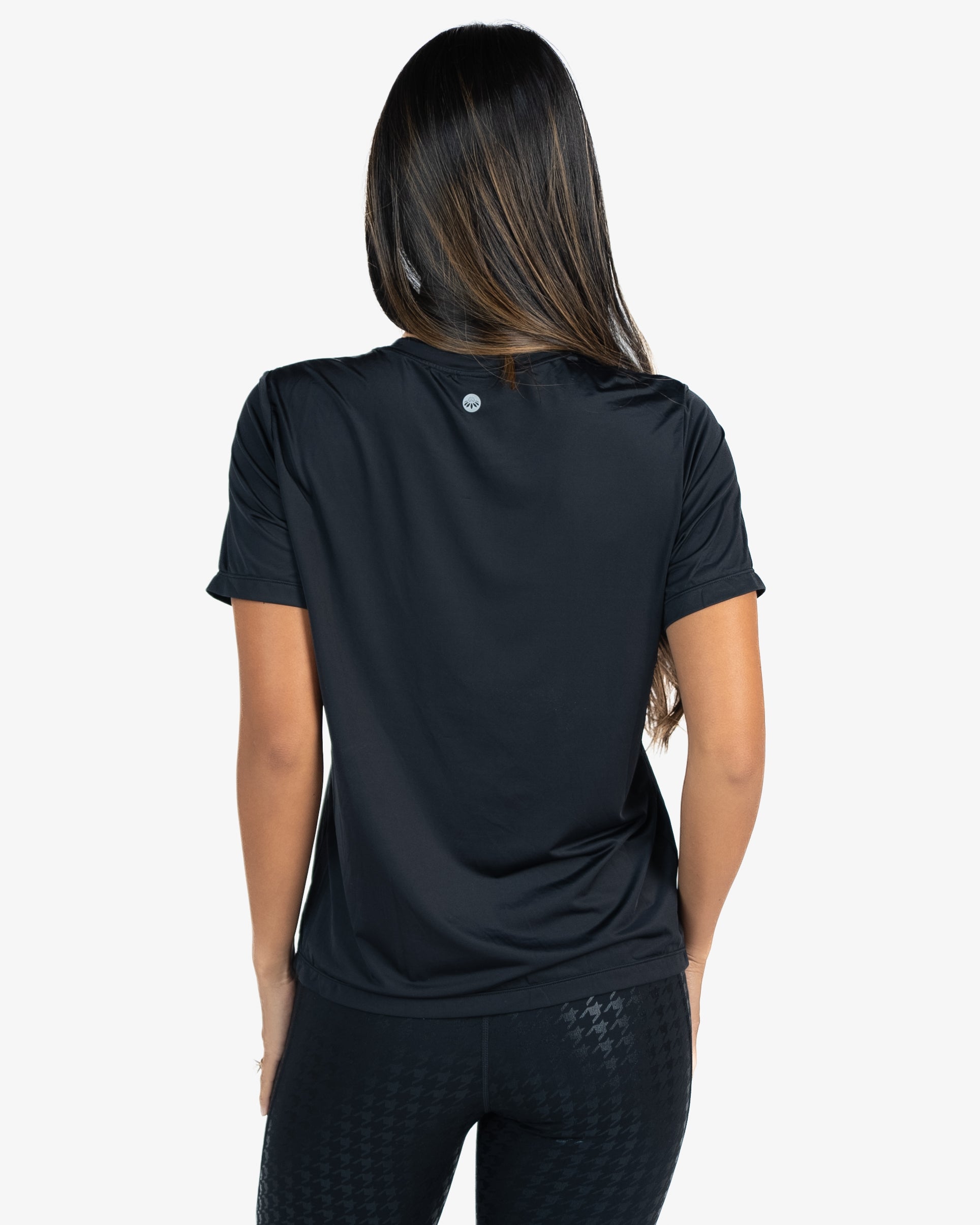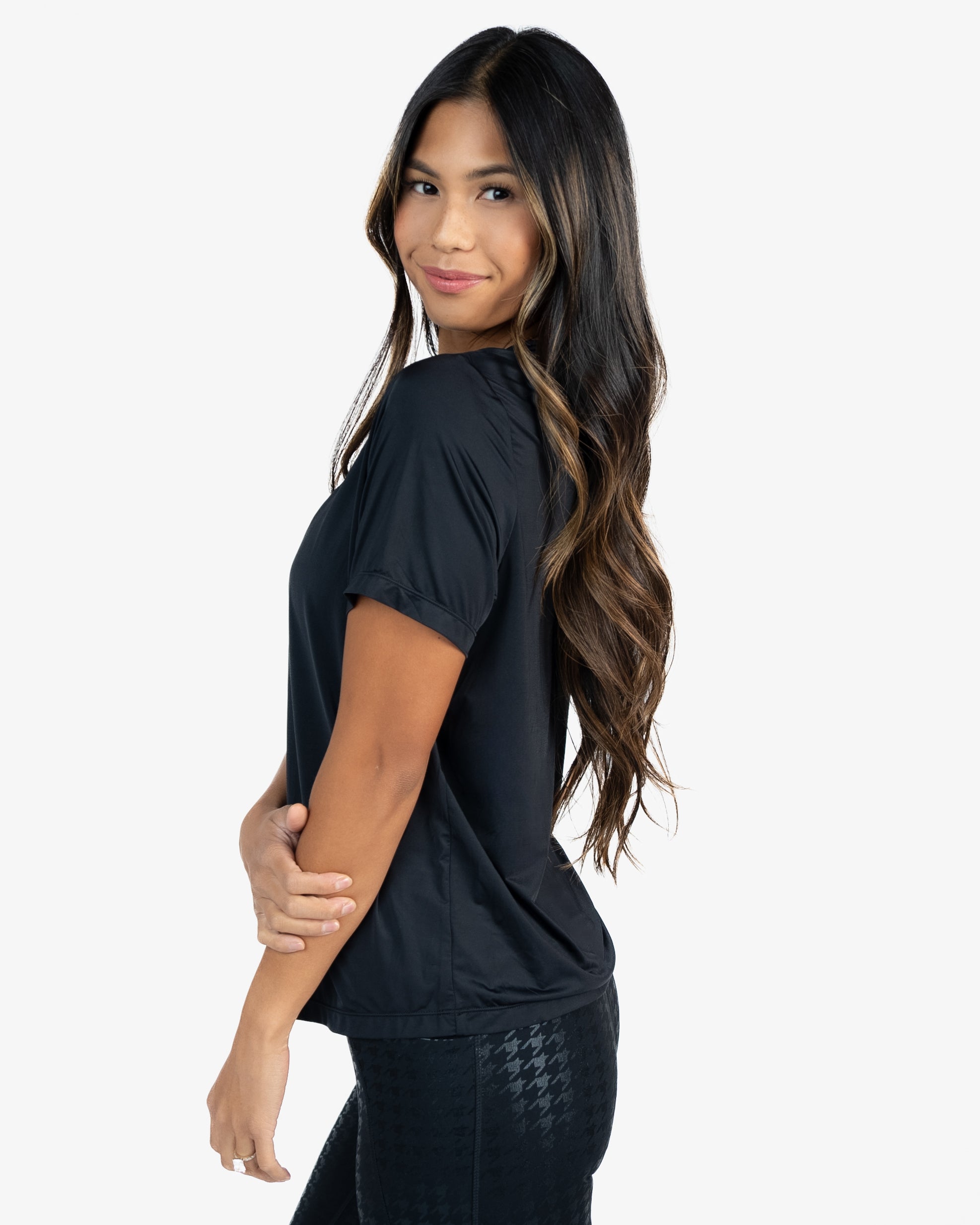We've updated this tee based on customer feedback to feature a lower neckline and slightly larger arm holes!