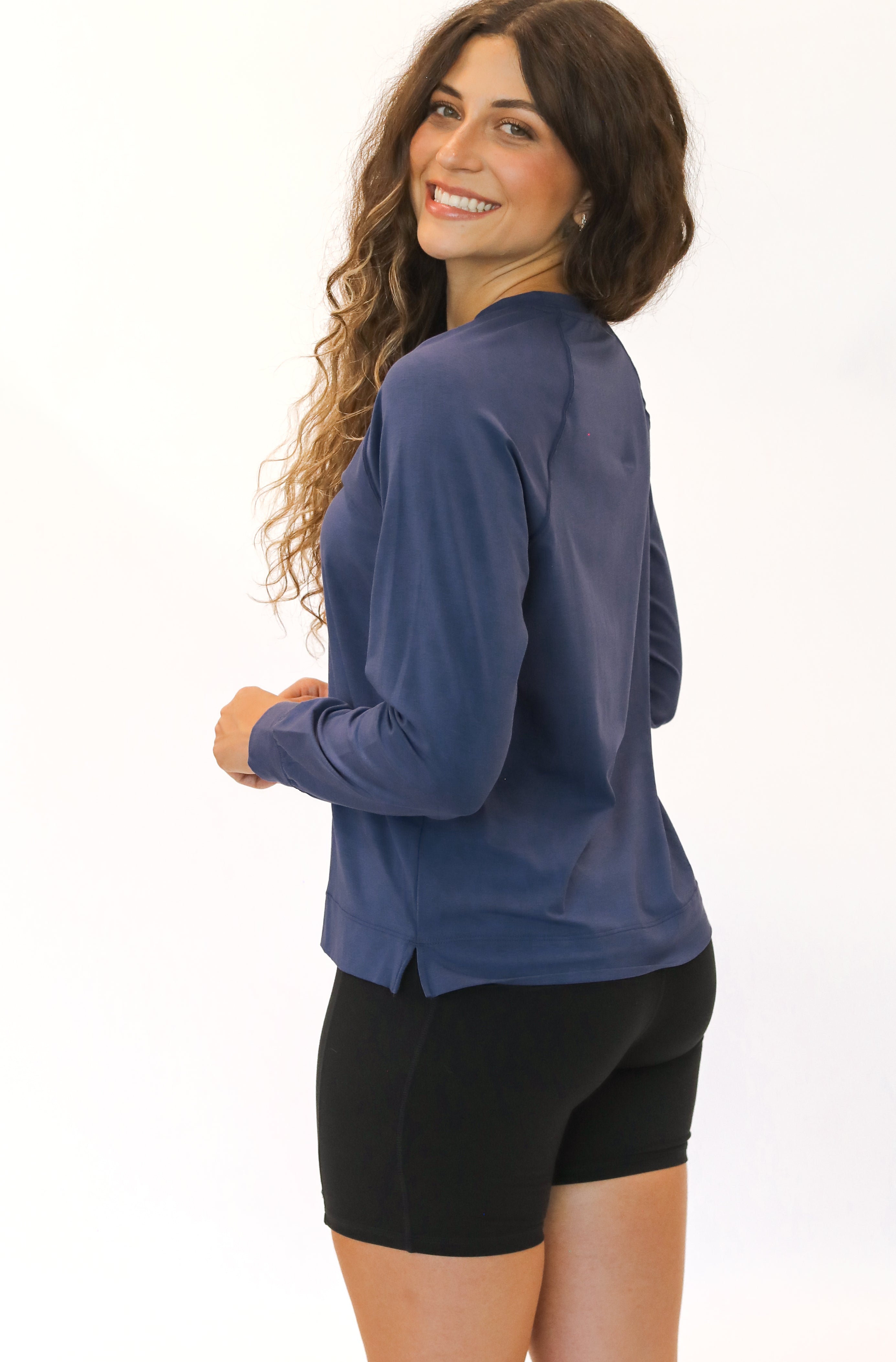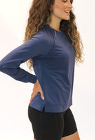 Our Infinity Long Sleeve is an easy-fitting active tee in our drapey, cool, and comfortable cotton, modal fabric. Designed with on-trend raglan sleeves, a crew neckline, and a straight hem this is the perfect piece to wear alone or layer infinite ways all season long.