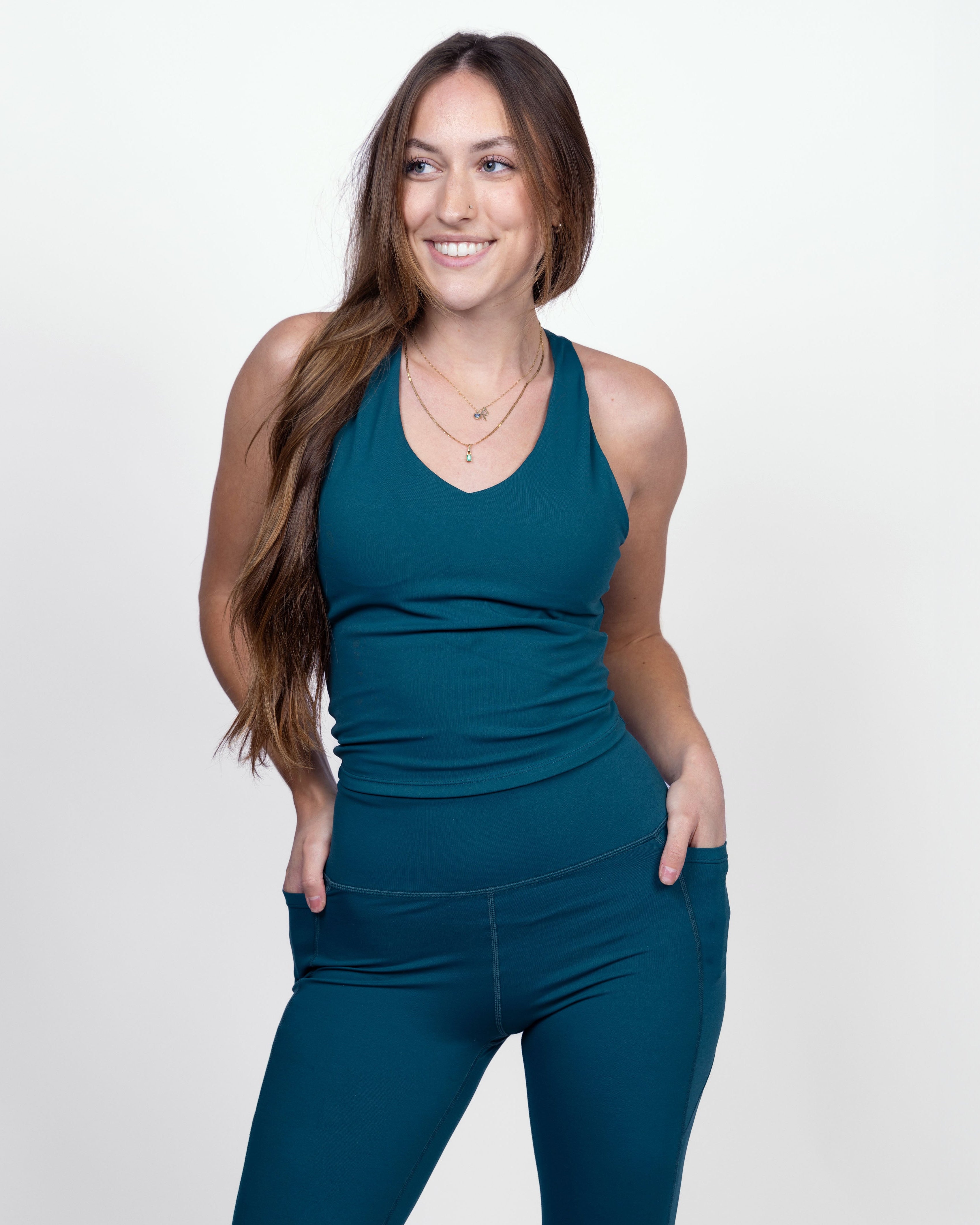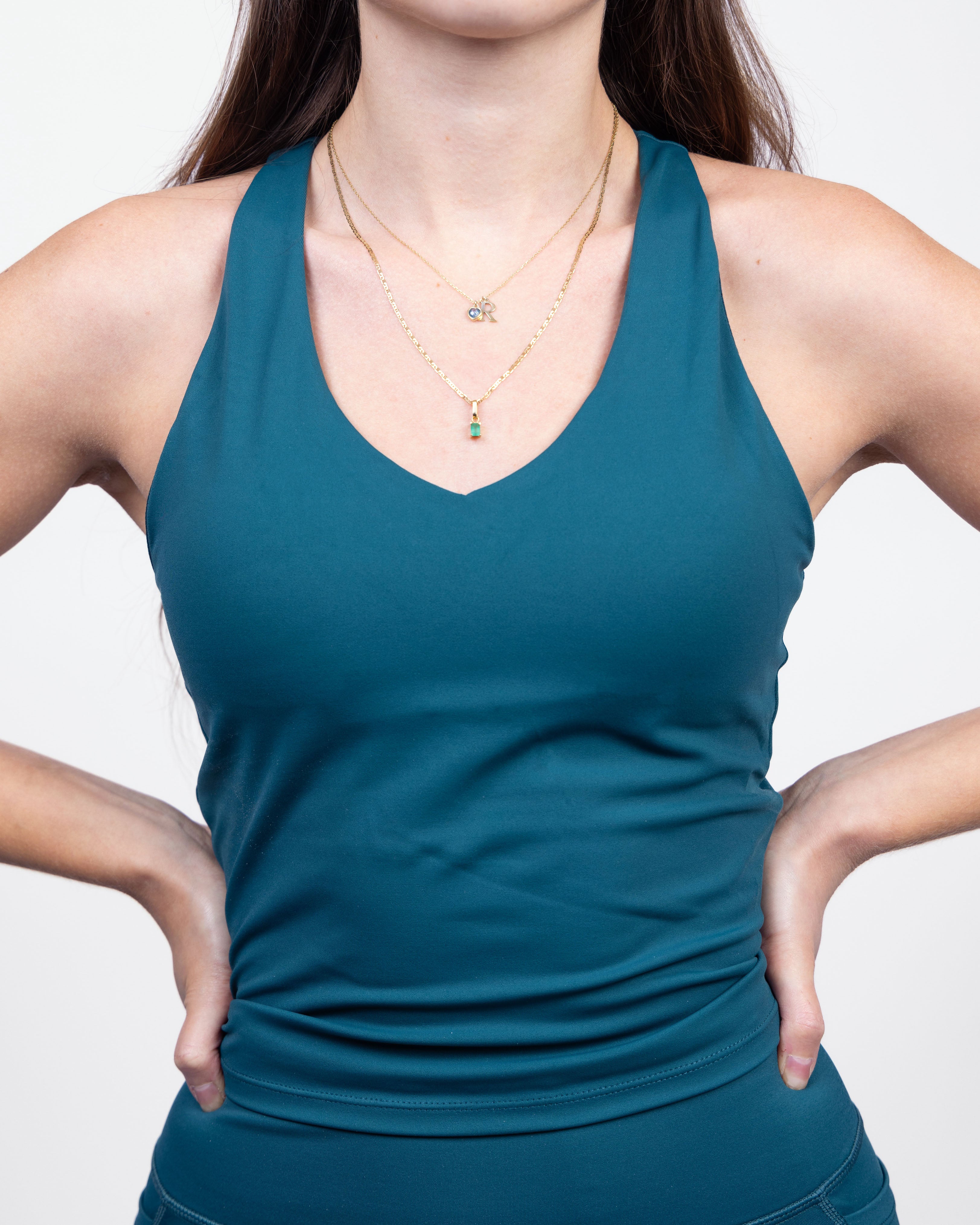 Sleek, supportive, and made to move. The Lux Velocity Racerback Crop is crafted from our signature compressive Lux fabric for a smooth, sculpted fit that stays put through every workout. With a built-in shelf bra, removable pads, and a flattering V-neckline, this fitted tank delivers style, support, and confidence—all in one streamlined design.
