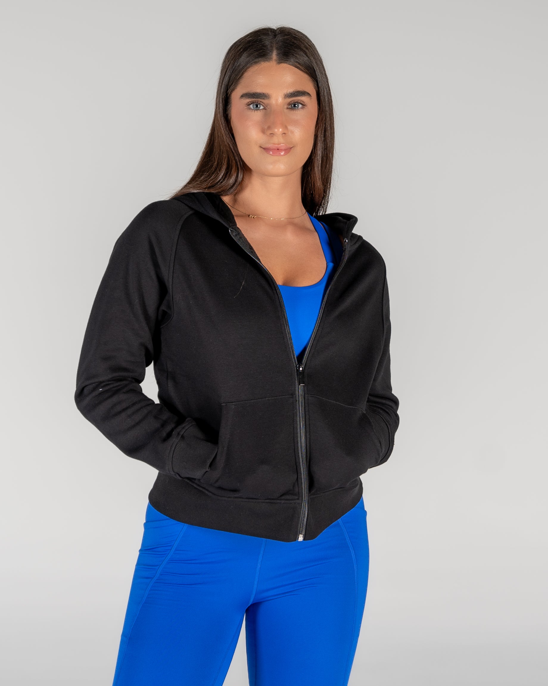 Experience ultimate comfort and versatility with our Classic Full-Zip Hoodie. Indulge in the luxurious softness of our warm and cozy fleece interior while rocking a full-length, body-skimming fit that exudes laid-back charm and is a perfect pre- and post-workout layer.