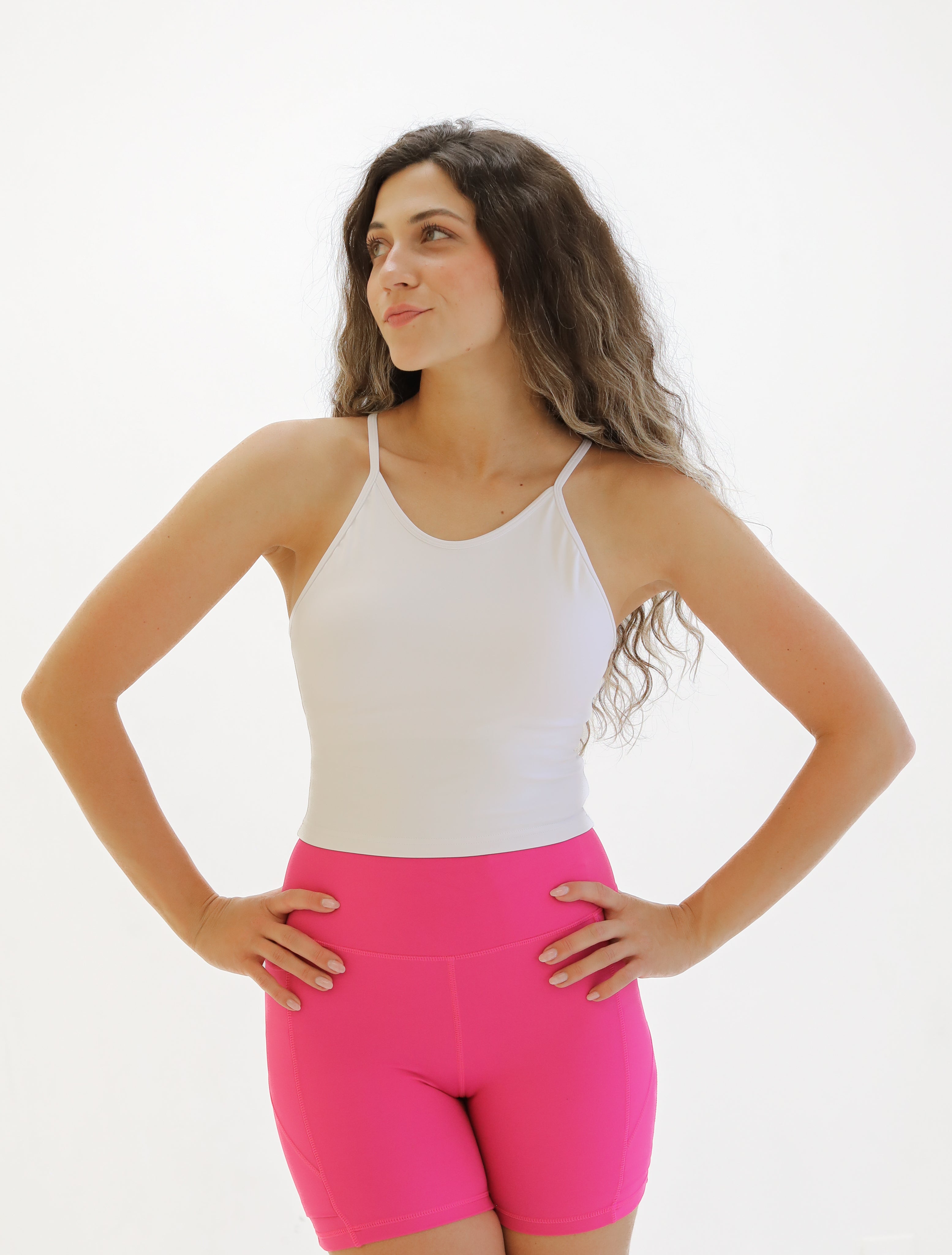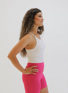 Lux Thin Strap Crop Tank - White