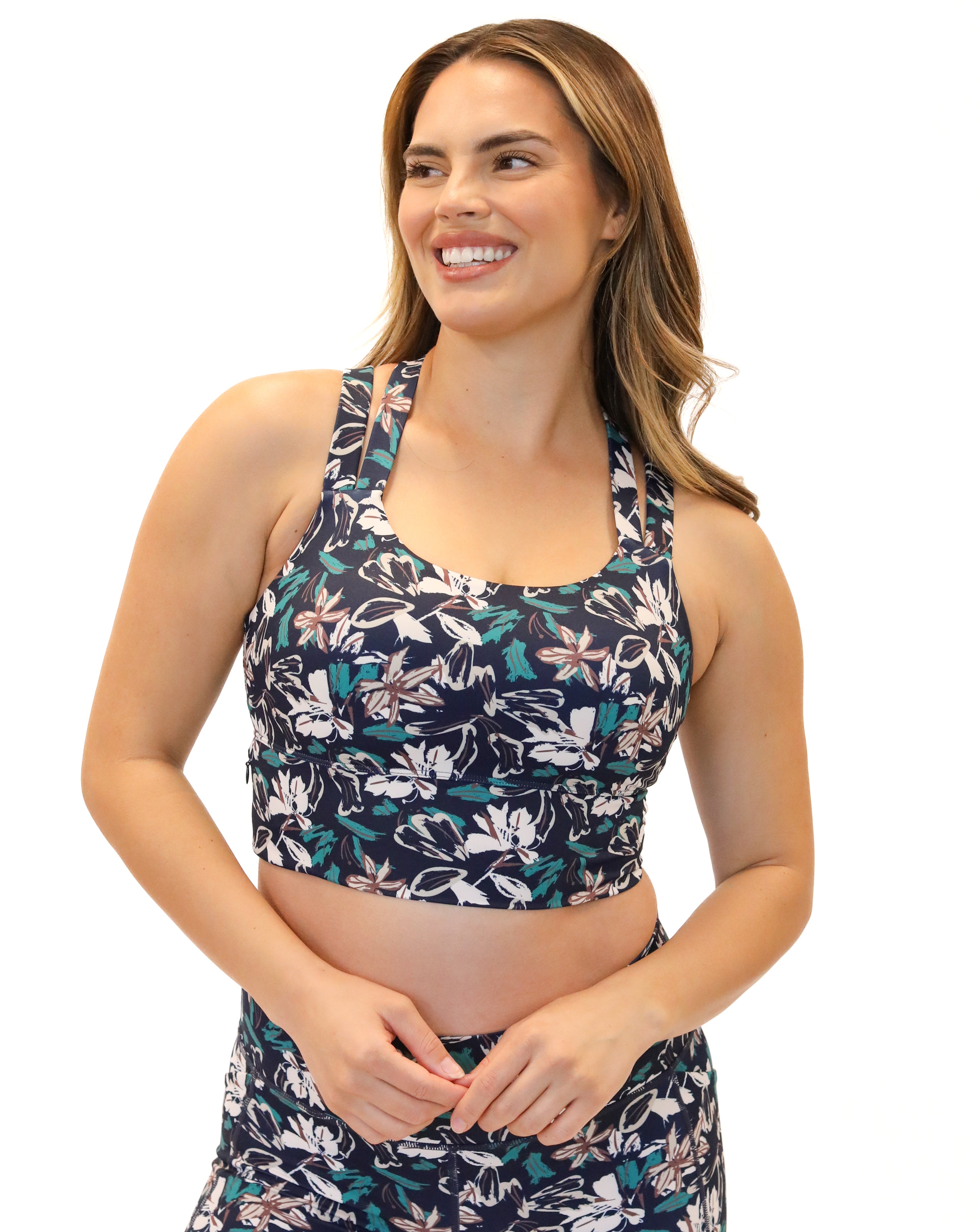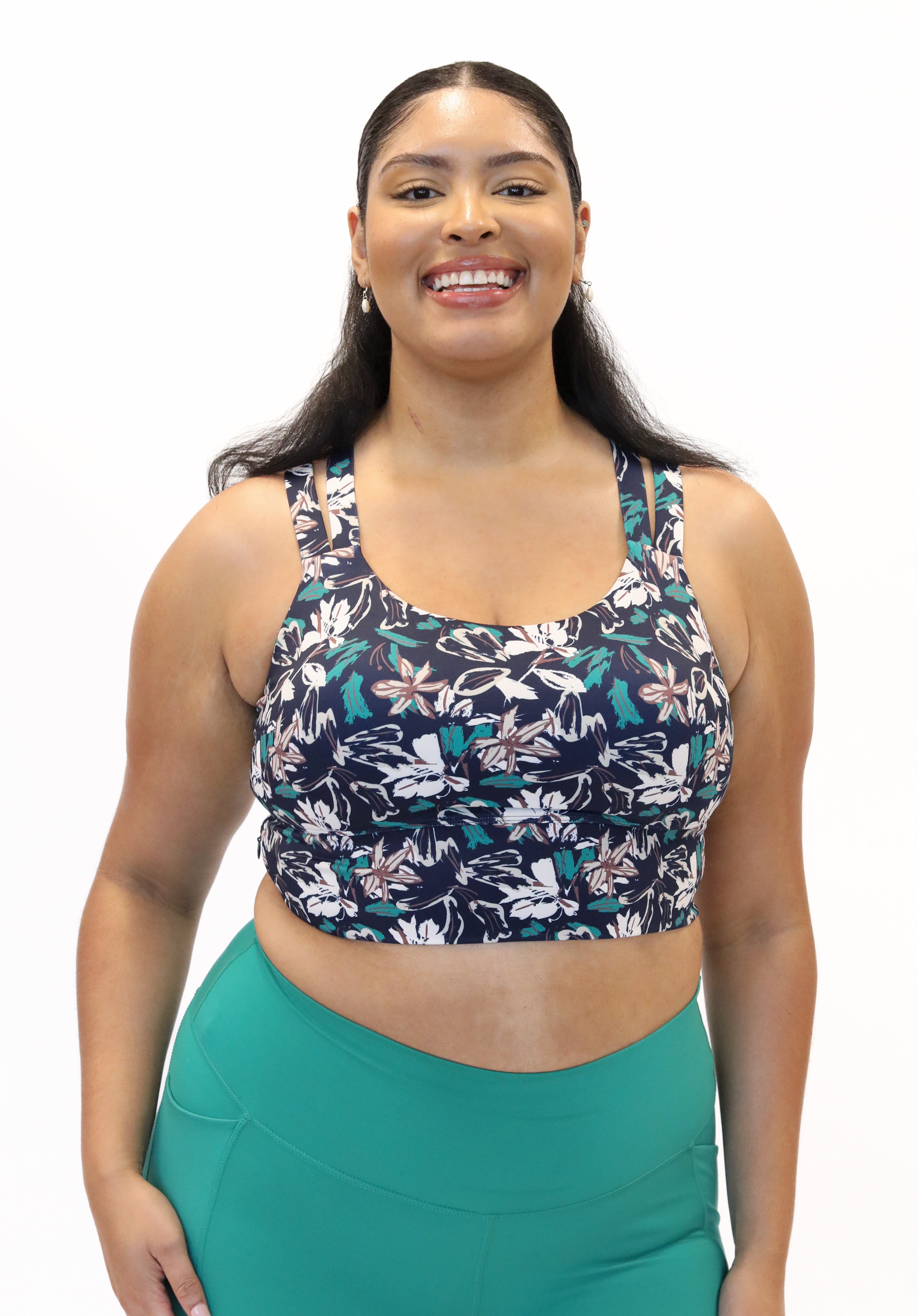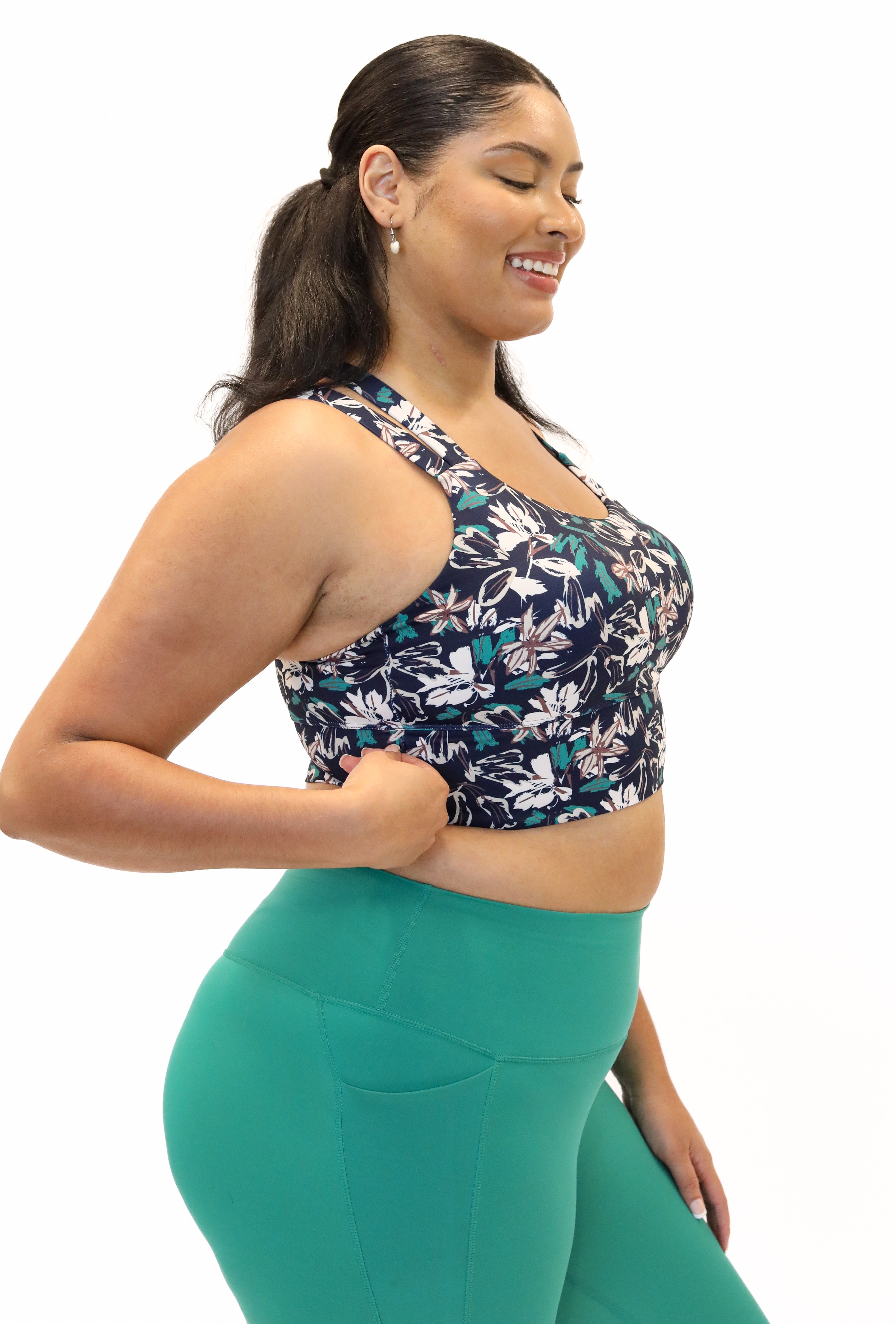 The Sierra Sports Bra was made to keep you cool and comfortable and to provide you with medium-to-high coverage. Made from a fast-drying and sleek Lux fabric, this sports bra doesn't weigh you down when you're on the go. It features removable bra pad inserts, key pocket, and strappy back for extra support. We recommend this bra for medium impact activities such as dance, yoga, pilates or weight-lifting workouts.