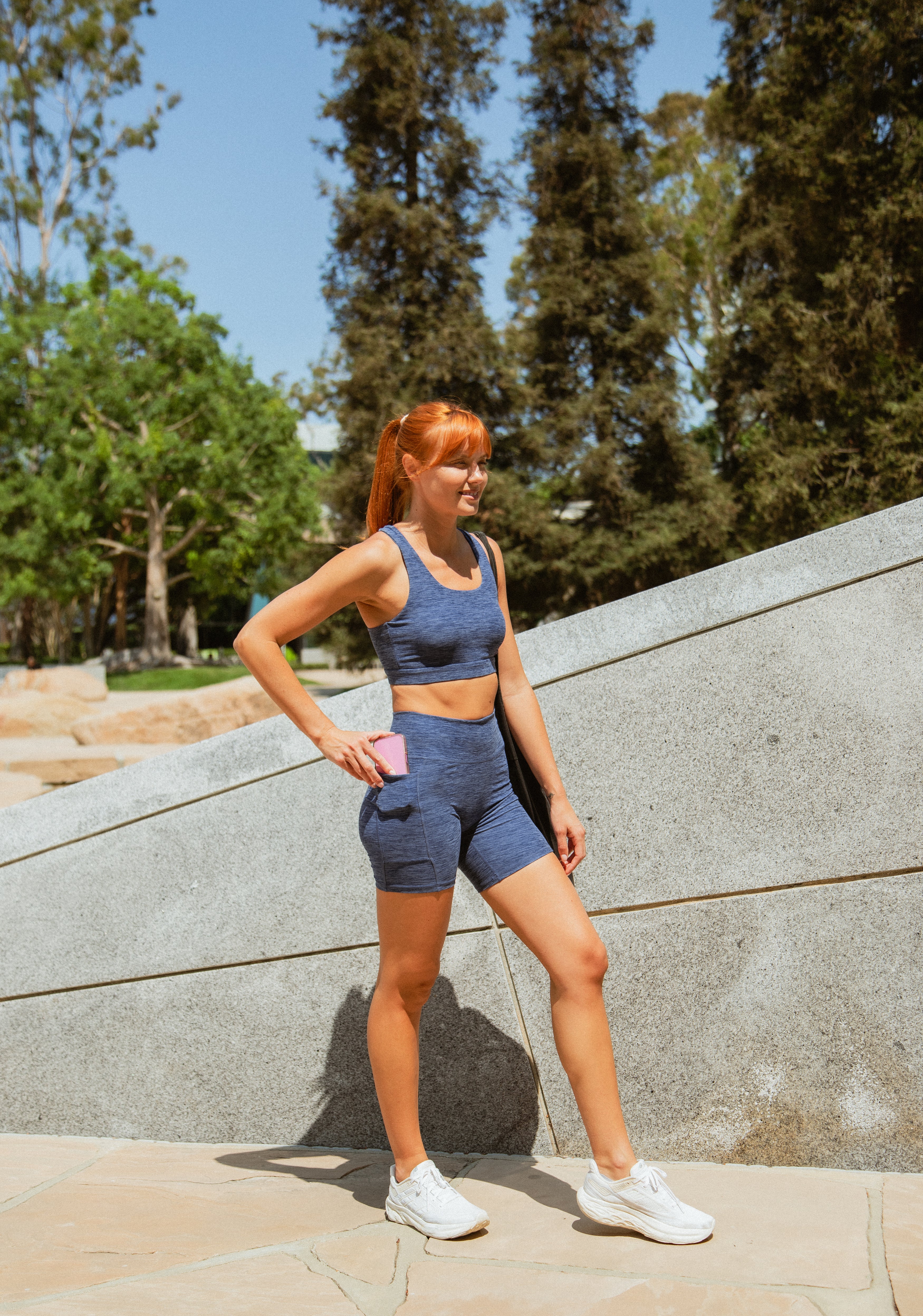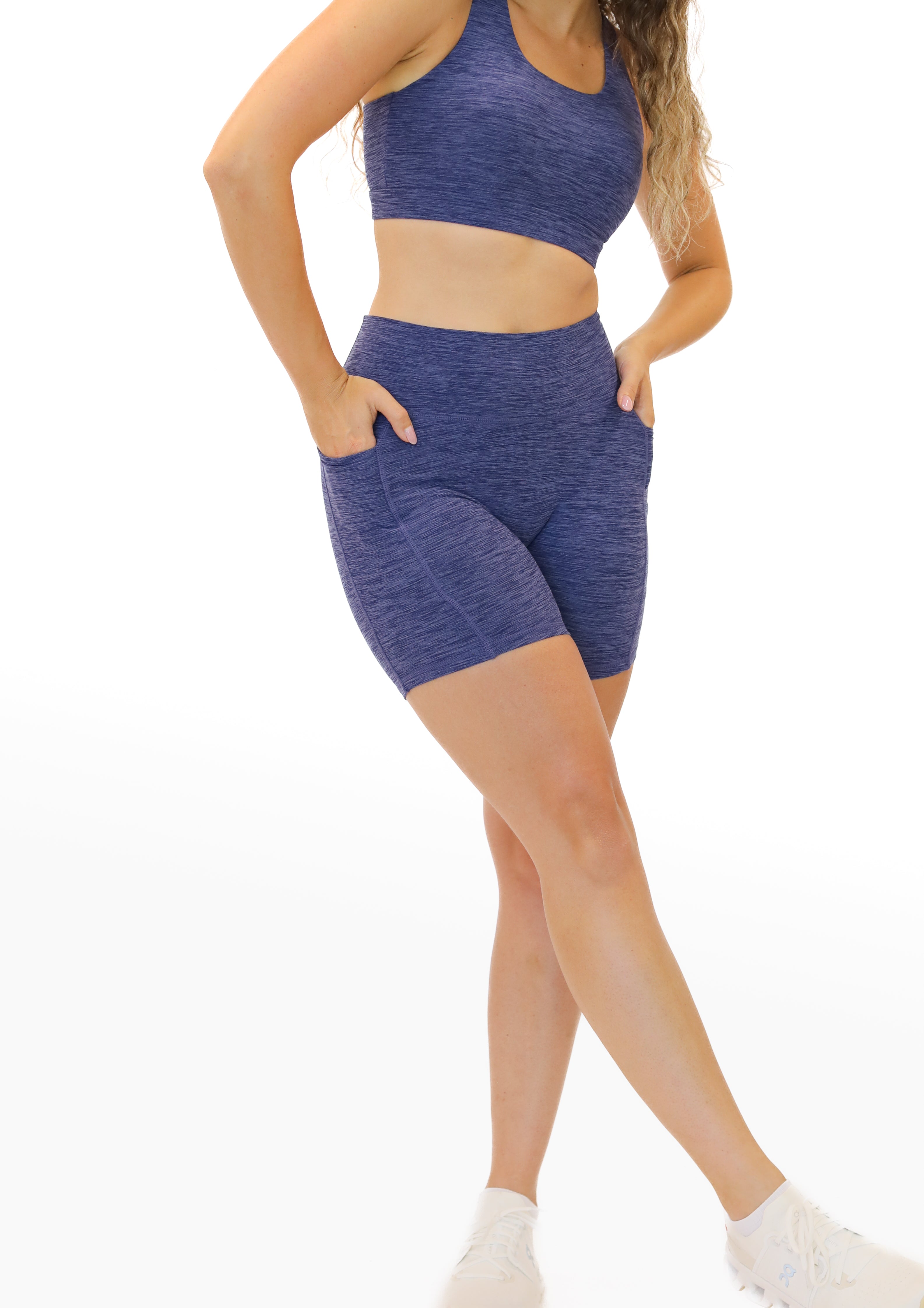 Experience the perfect blend of style and functionality with our Heathered Dynamic 6 in. Biker Shorts. Designed with our lightweight, breathable Dynamic fabric that offers four-way stretch for optimal movement, these shorts are ideal for all workout activities. Featuring a seamless waistband for a smooth fit, no center front seam, and a 6-inch inseam that flatters your shape, plus a subtle V-cut at the back to enhance your assets. With convenient side pockets for essentials, these biker shorts combine performance and practicality, making them a versatile addition to your active wear collection.