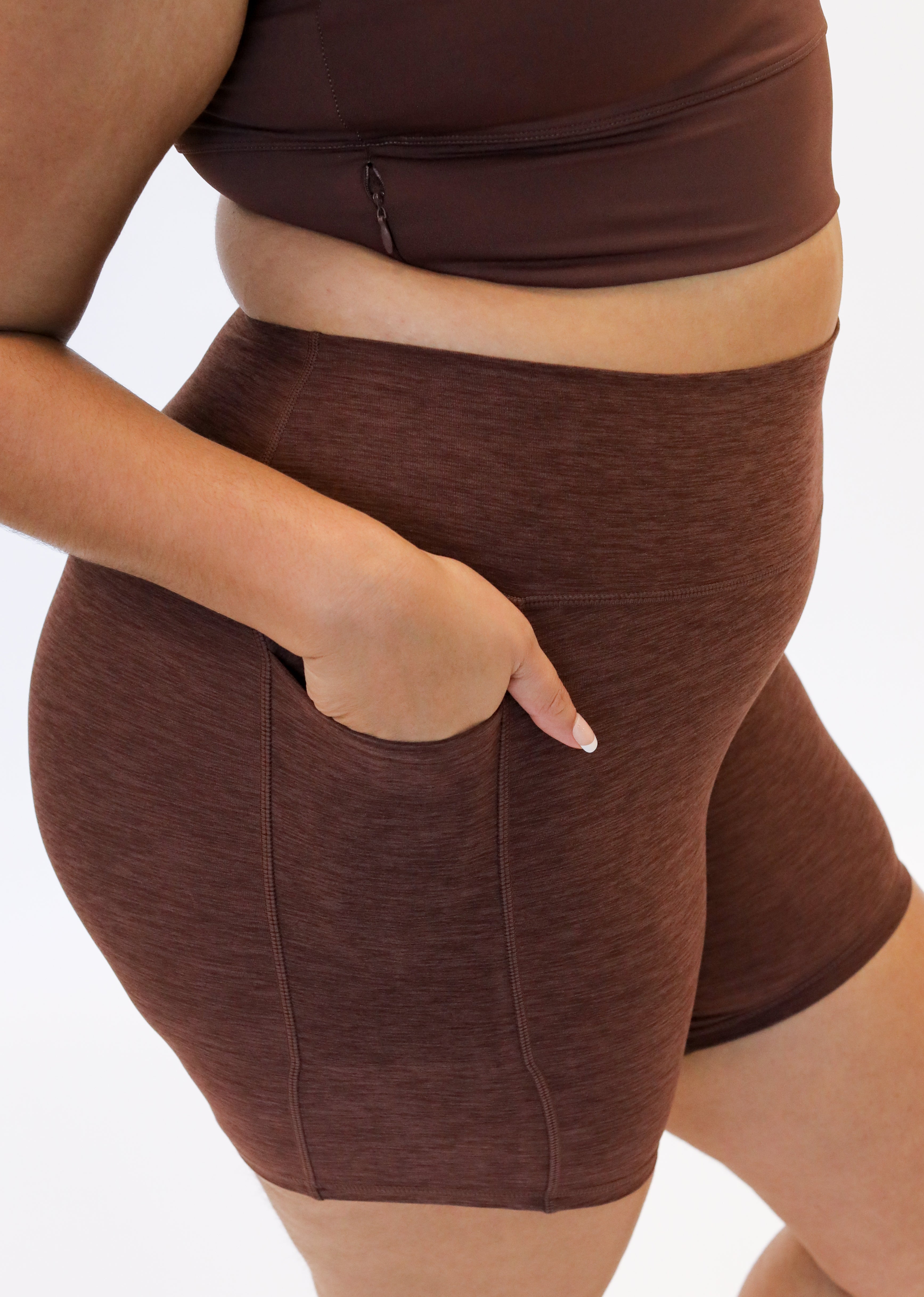 Experience the perfect blend of style and functionality with our Heathered Dynamic  Biker Shorts. Designed with our lightweight, breathable Dynamic fabric that offers four-way stretch for optimal movement, these shorts are ideal for all workout activities. Featuring a seamless waistband for a smooth fit, no center front seam, and a 4 or 6 inch inseam that flatters your shape, plus a subtle V-cut at the back to enhance your assets. With convenient side pockets for essentials, these biker shorts combine performance and practicality, making them a versatile addition to your active wear collection.