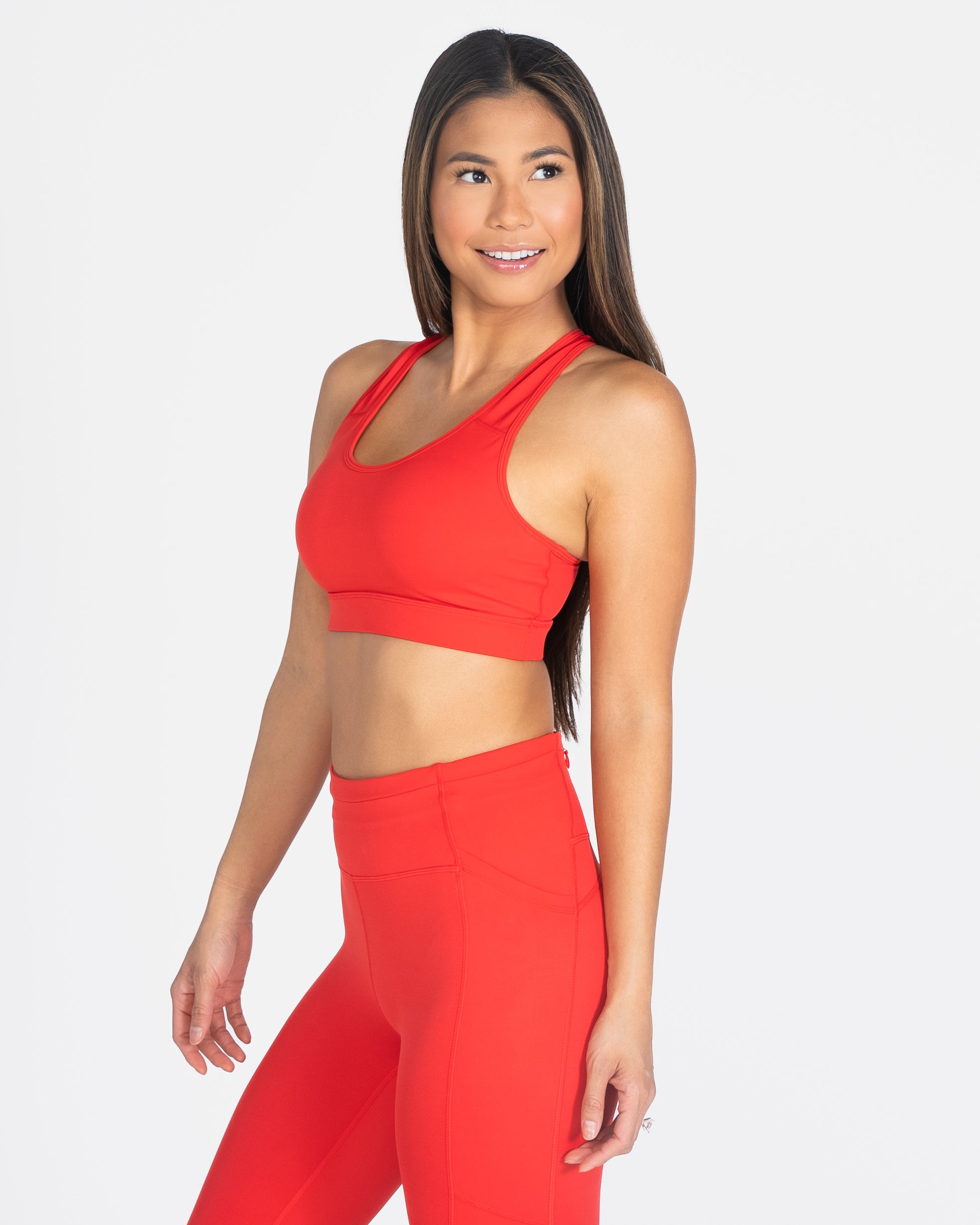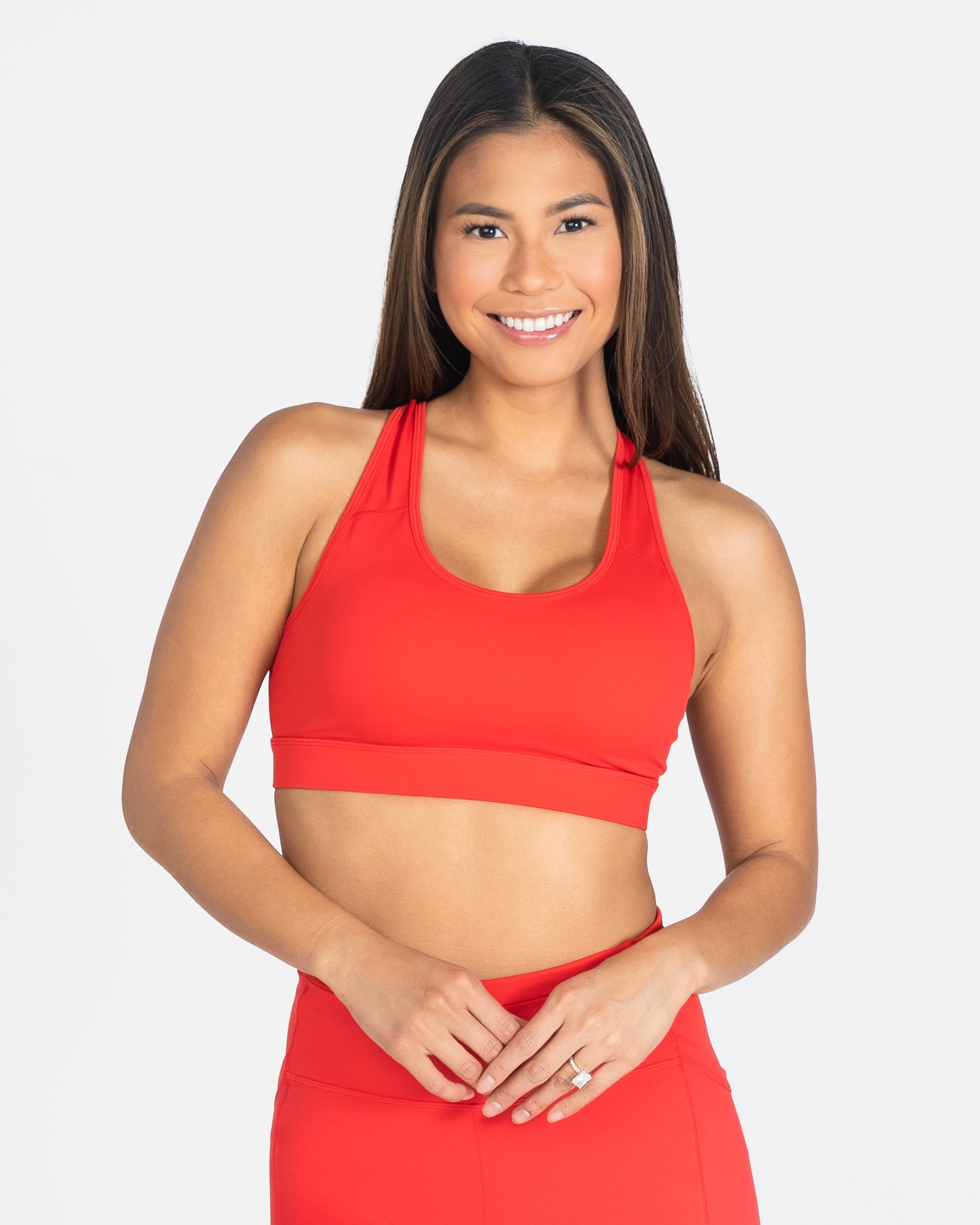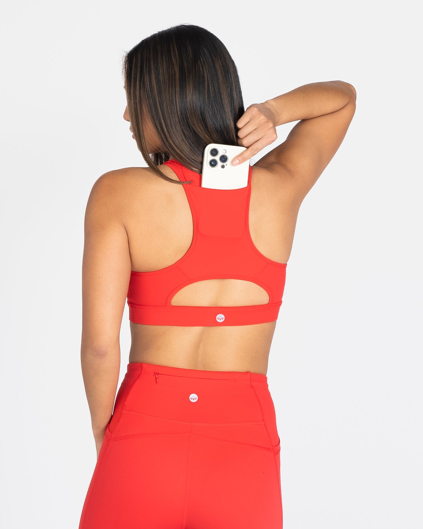 Get where you're going in style and comfort with our fan-favorite running sports bra. Featuring a racerback, wire-free construction, this performance bra has flat, chafe-resistant seams for maximum comfort. Other features include a back pocket to stash necessities, removable cups, medium impact support, and cool, slick feel. It's tried and true - just check out the reviews!