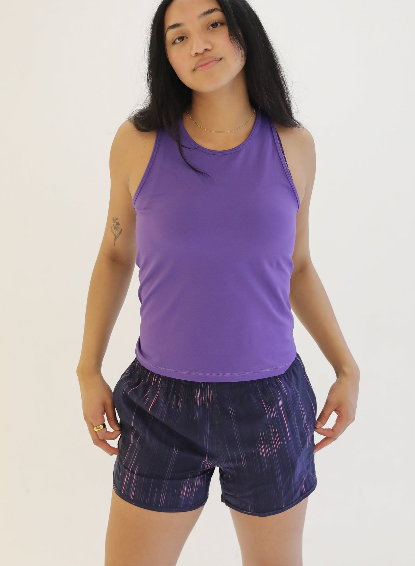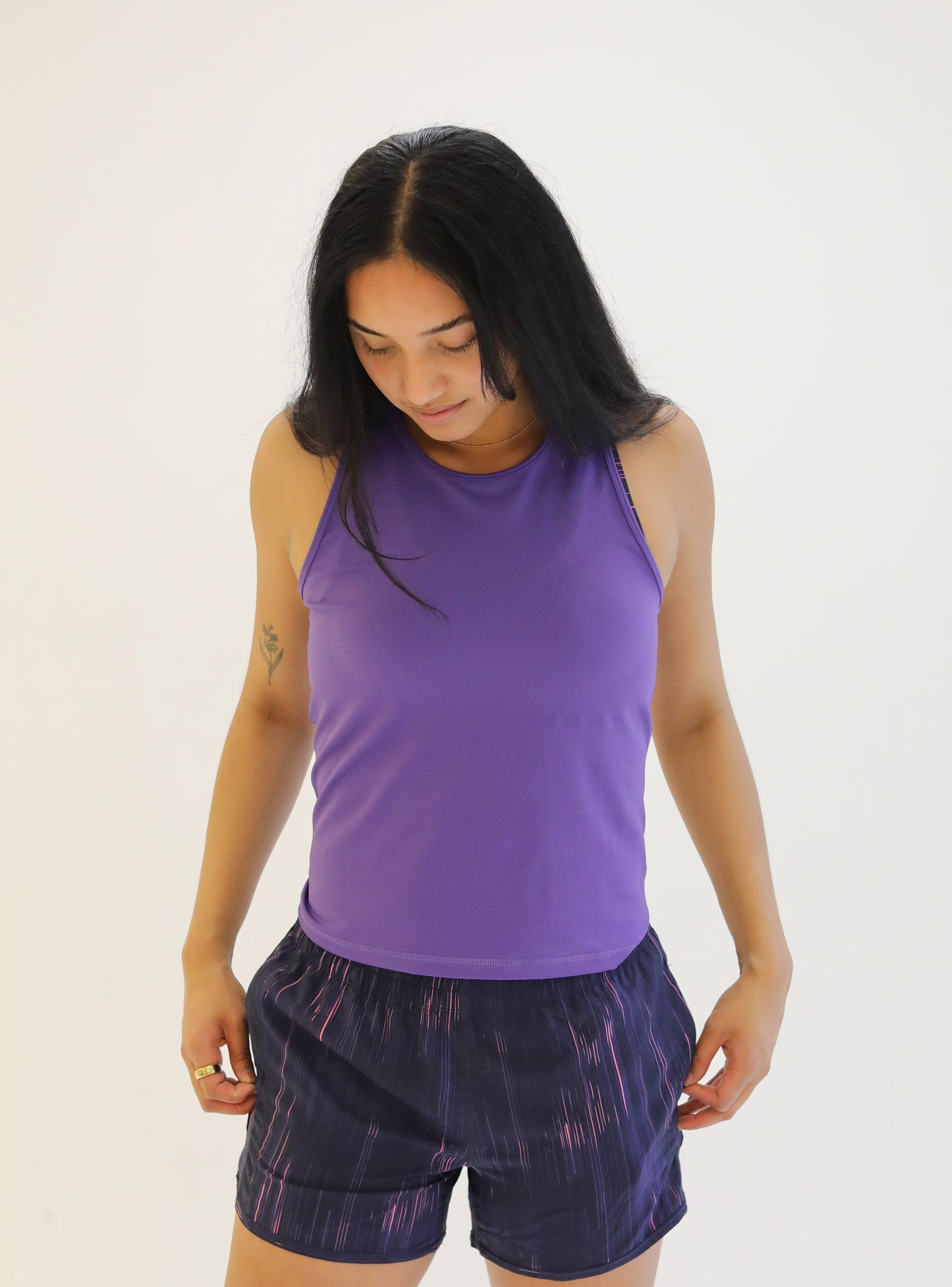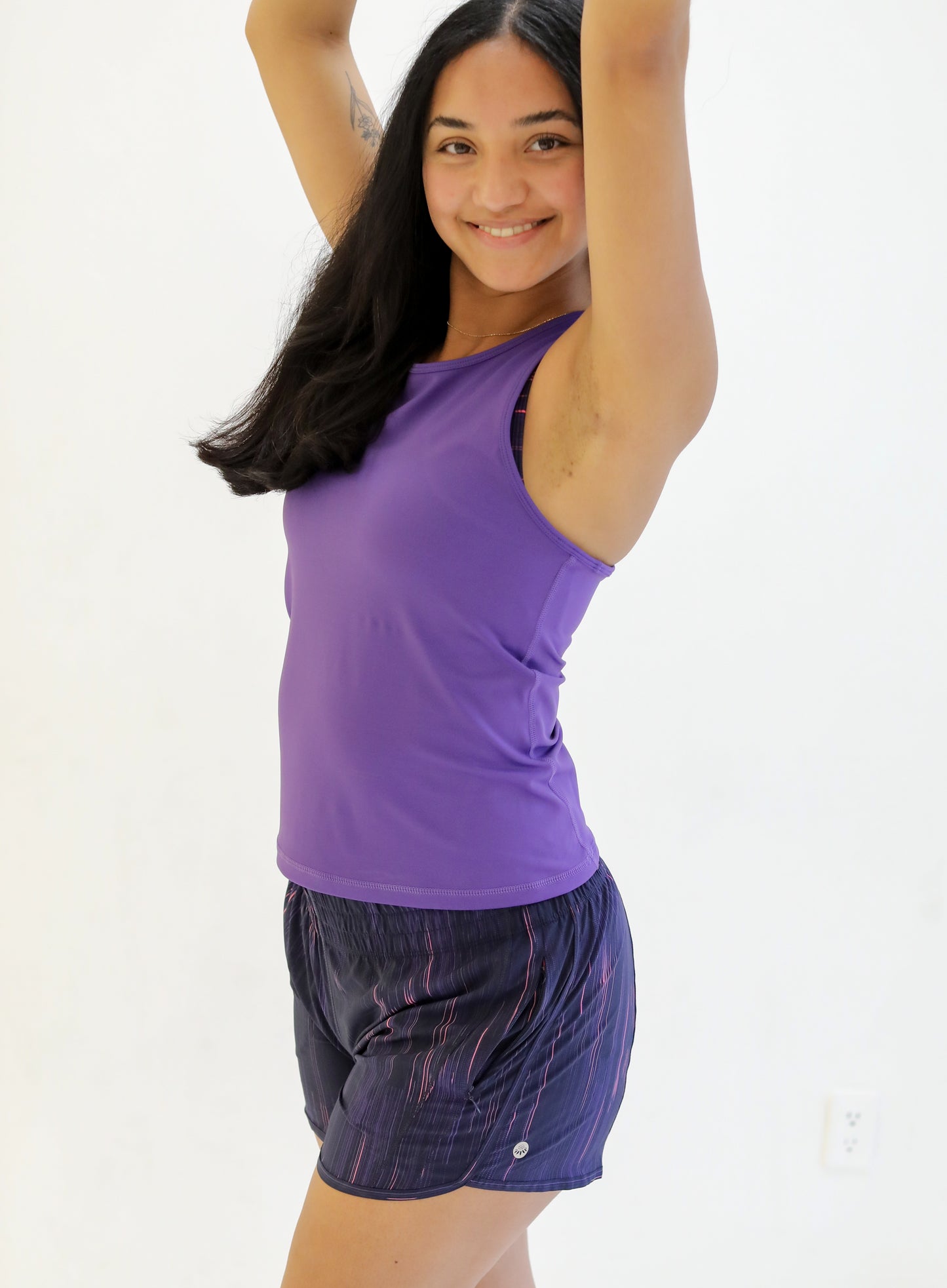 The Lux Tank is crafted with luxurious, cool to the touch fabric. This tank features a stylish racerback design and a body-skimming silhouette. Its non-compressive nature allows for easy movement, while still providing a slightly fitted look. Stay effortlessly chic during workouts or casual outings with the Lux Tank.