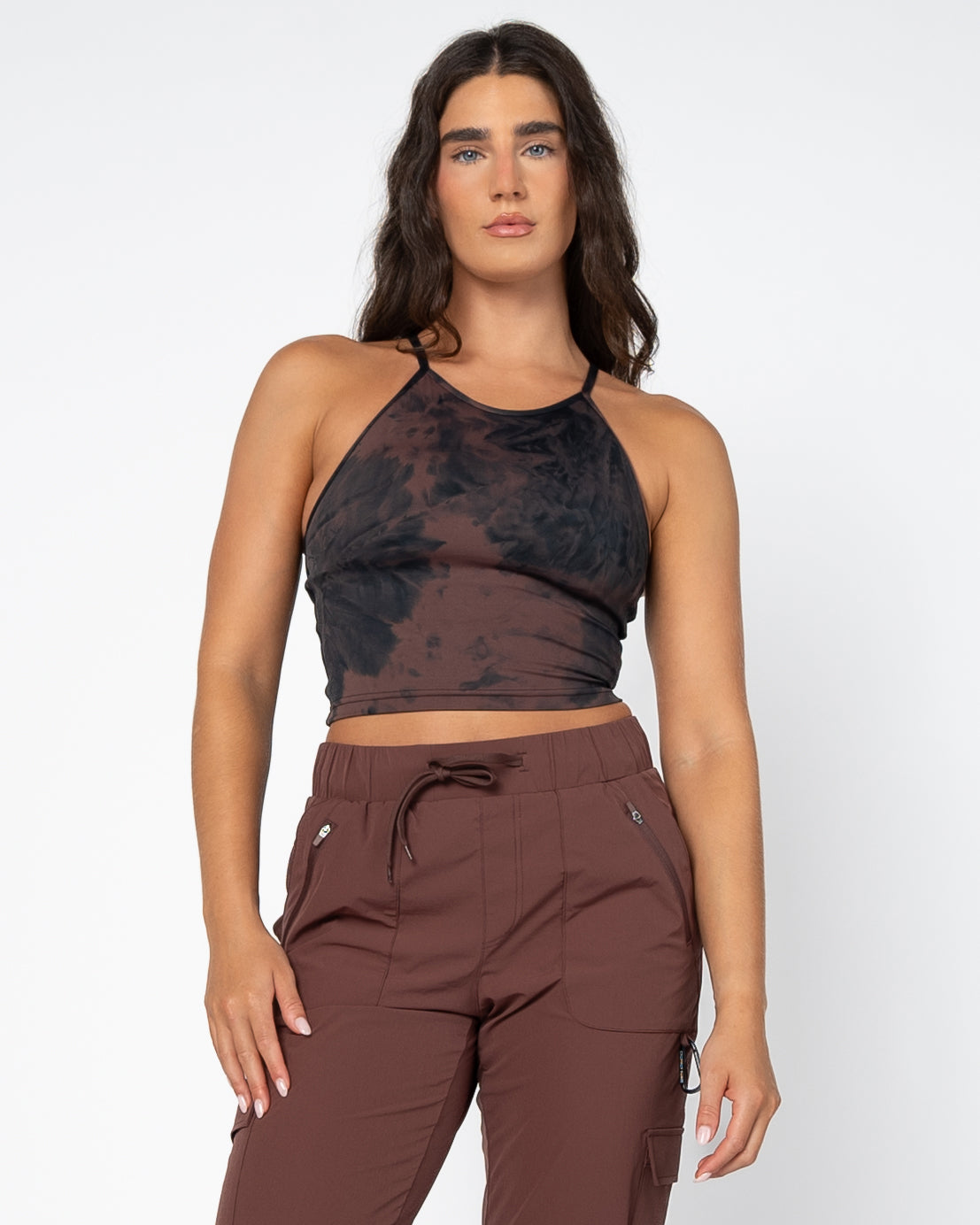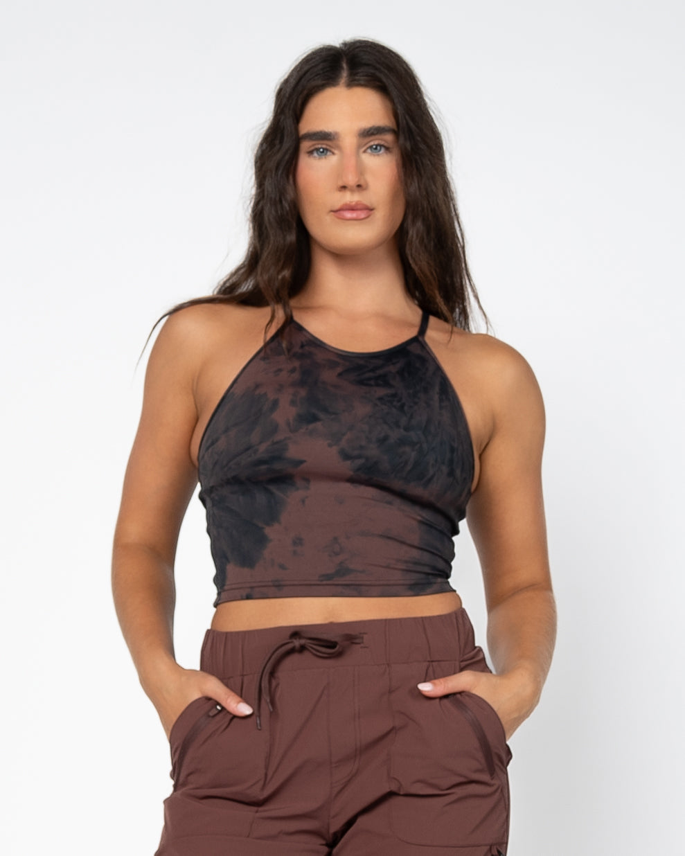 Lux Thin Strap Crop Tank - Fossil/Black Tie Dye