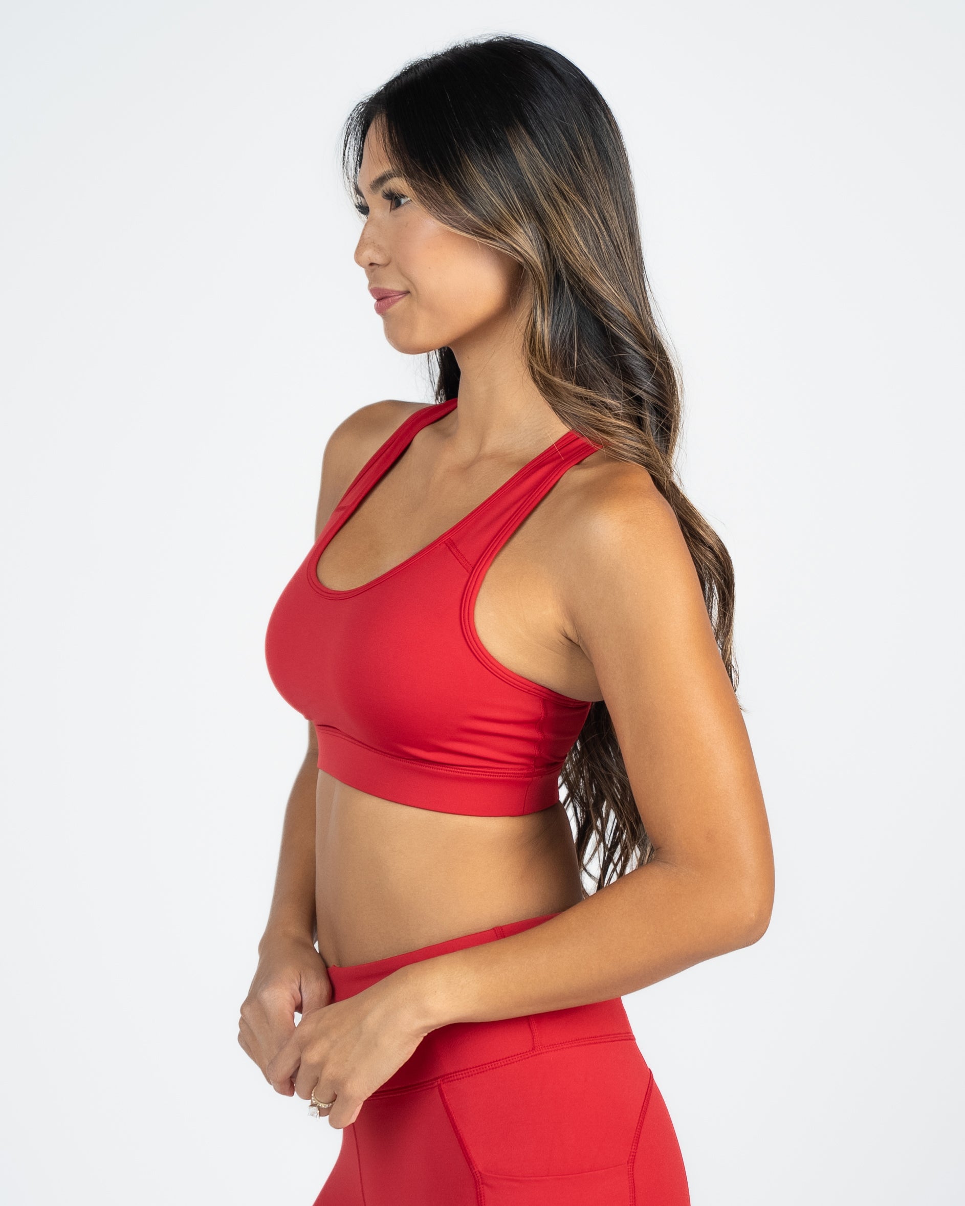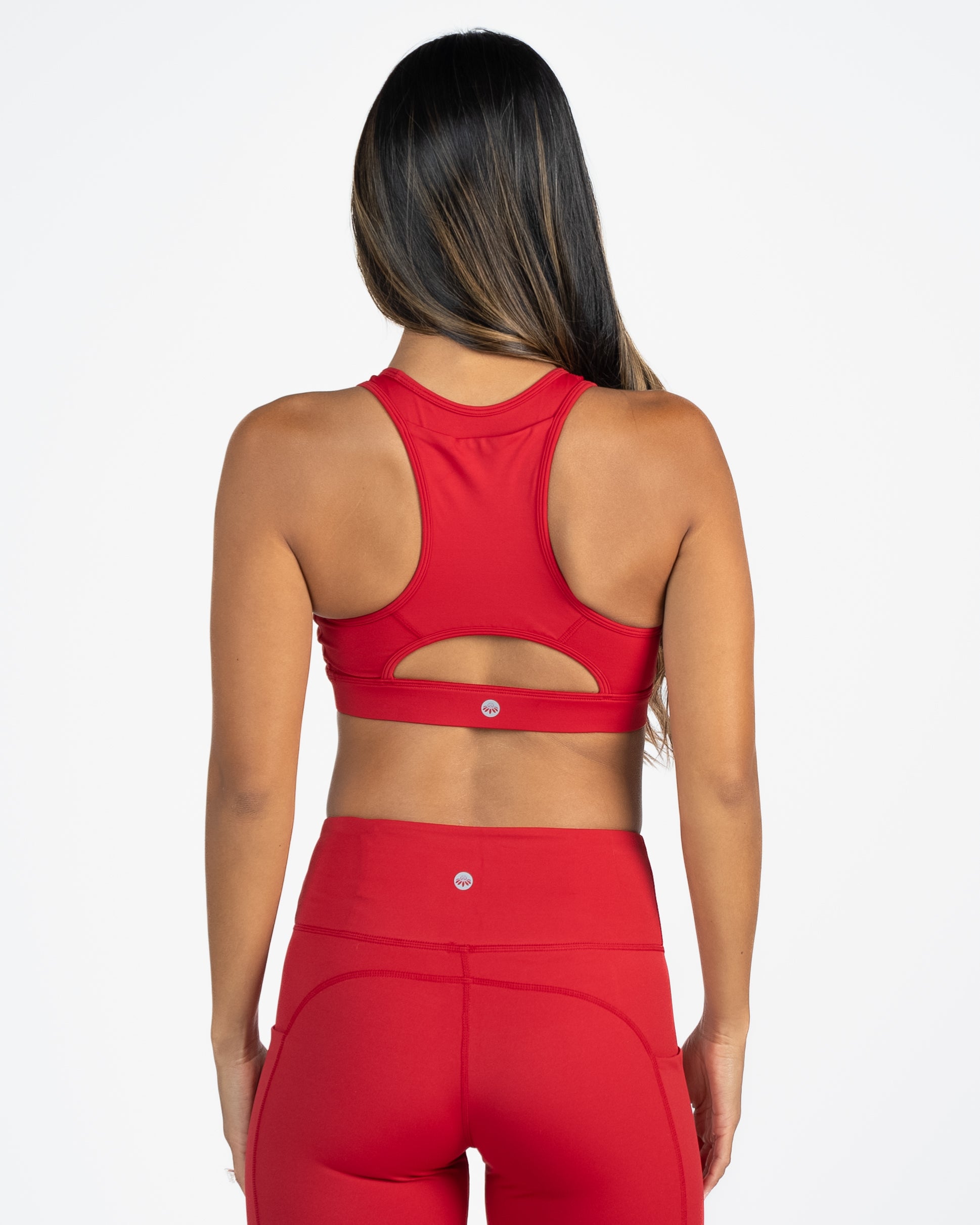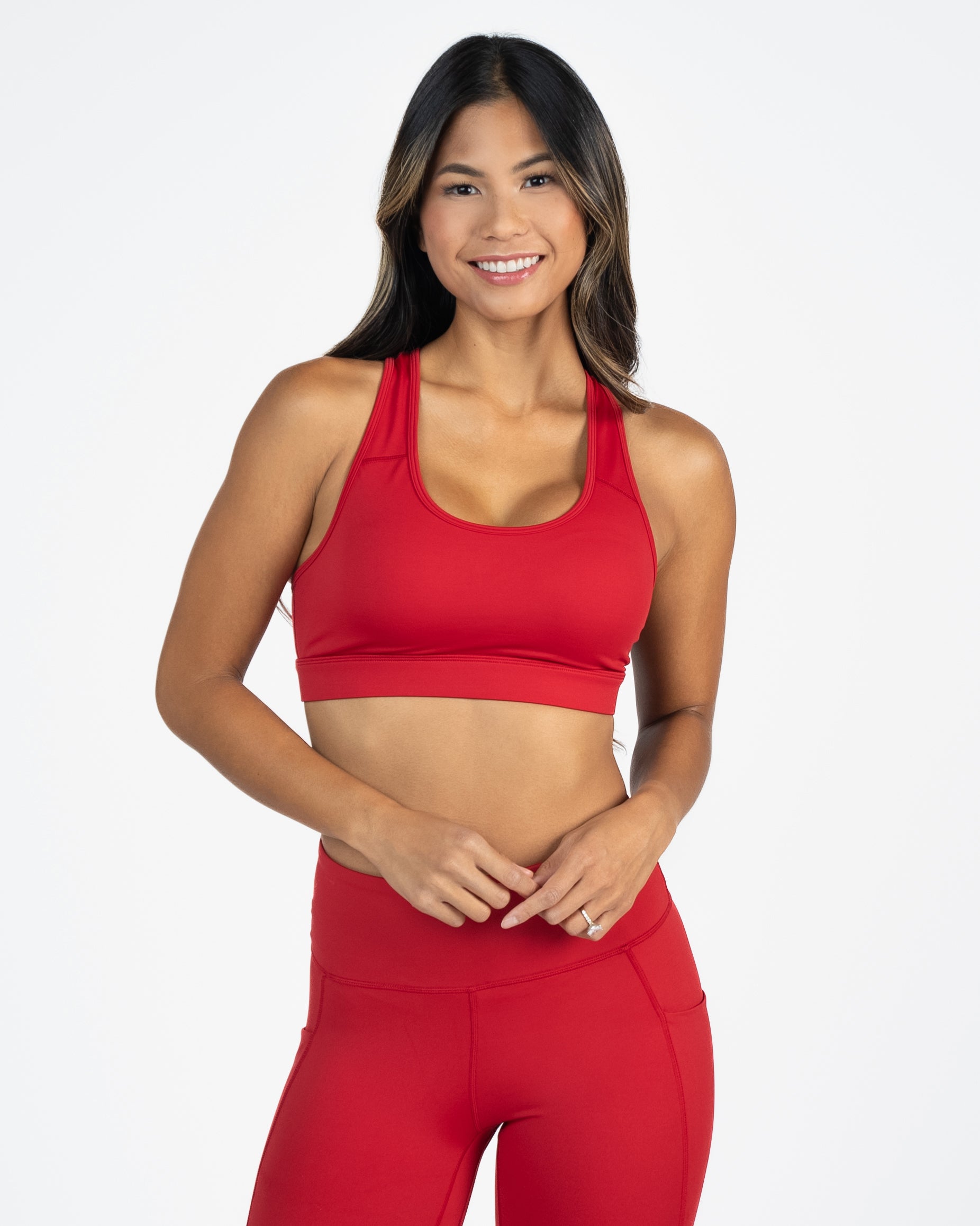 Get where you're going in style and comfort with our fan-favorite running sports bra. Featuring a racerback, wire-free construction, this performance bra has flat, chafe-resistant seams for maximum comfort. Other features include a back pocket to stash necessities, removable cups, medium impact support, and an ultra soft feel. It's tried and true - just check out the reviews!