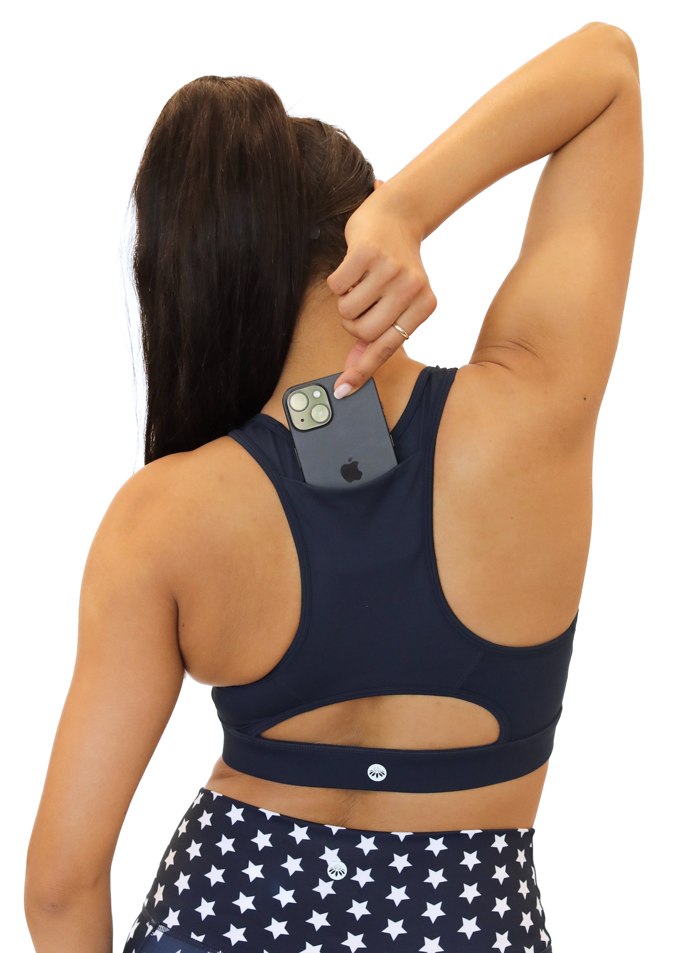 Get where you're going in style and comfort with our fan-favorite running sports bra. Featuring a racerback, wire-free construction, this performance bra has flat, chafe-resistant seams for maximum comfort. Other features include a back pocket to stash necessities, removable cups, medium impact support, and cool, slick feel. It's tried and true - just check out the reviews!