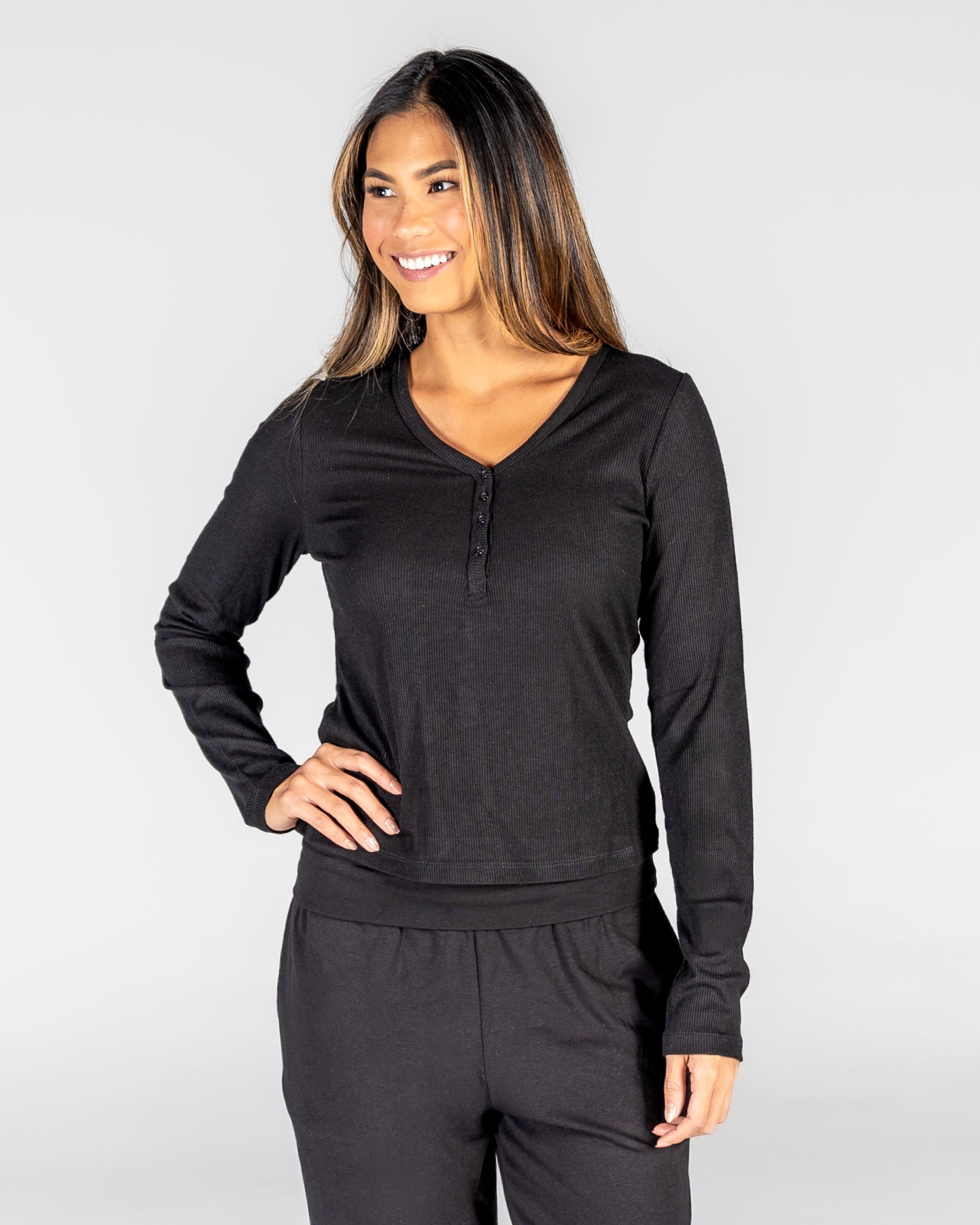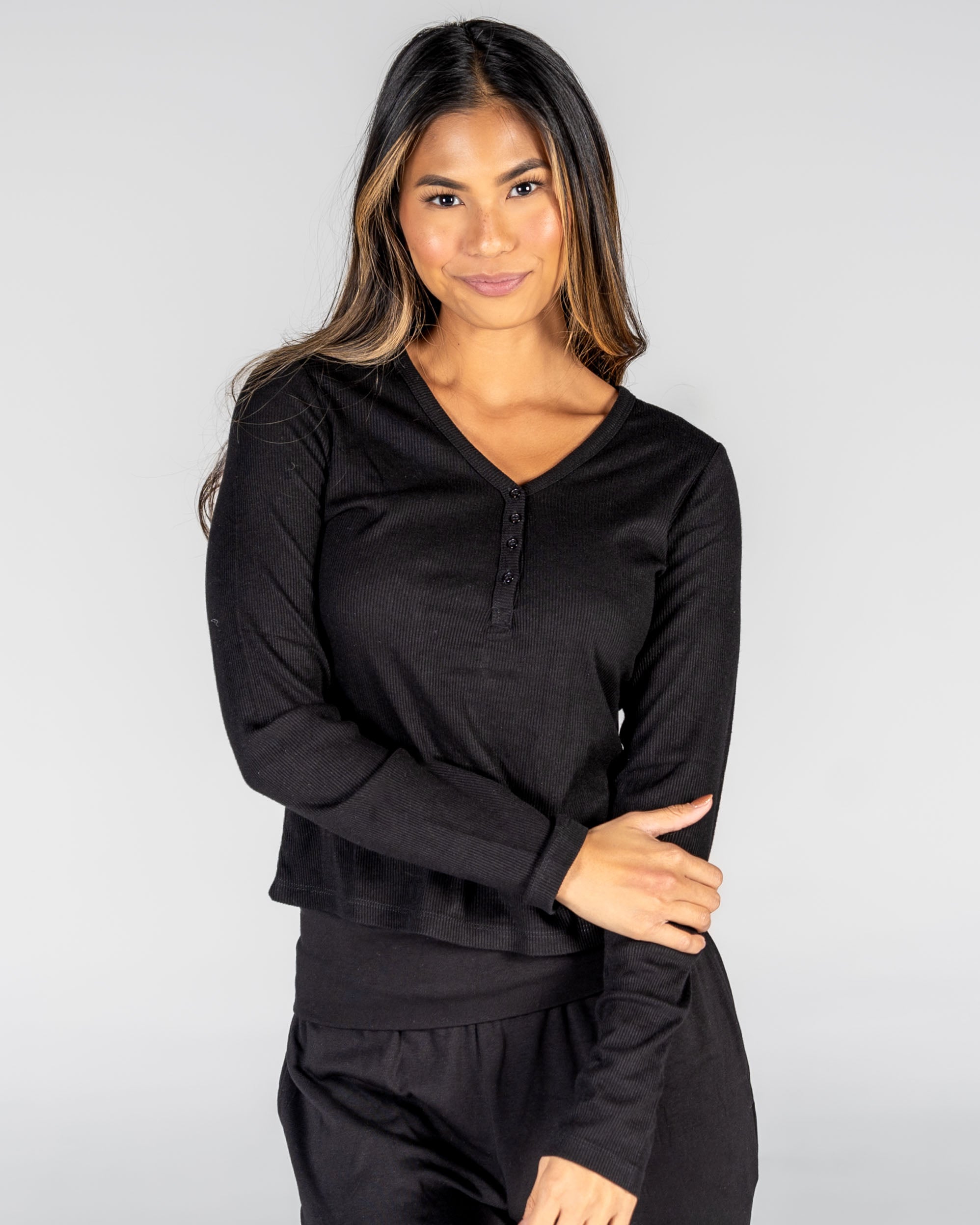 Serenity Long Sleeve Henley - Black - XS & S ONLY - FINAL SALE