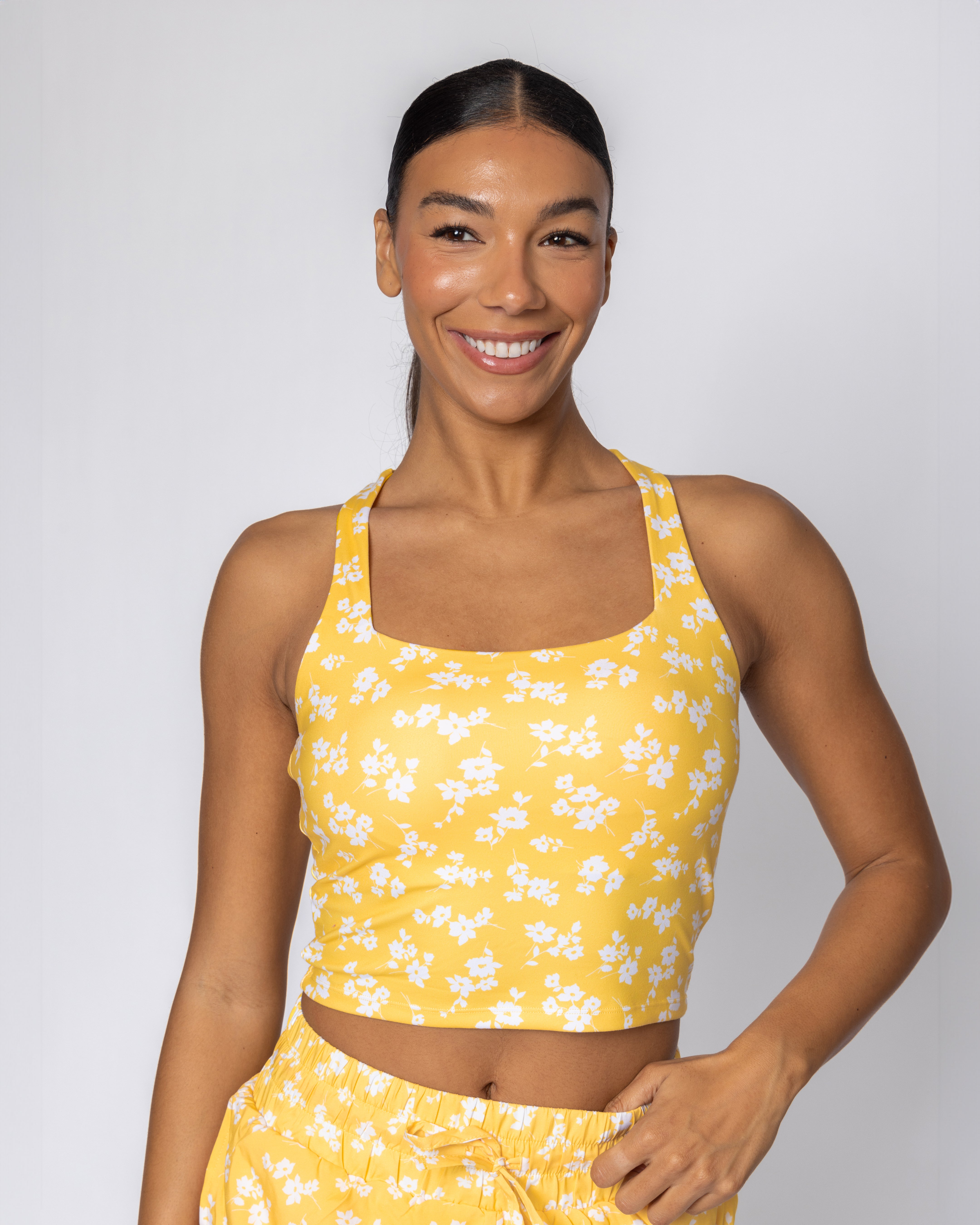 Made from our buttery-soft Skin fabric, this crop top features criss-cross straps and a unique twist back detail for a chic and functional design. The built-in bra provides light to medium support, while the longer length offers more coverage than a sports bra but less than a full-length tank. Ideal for studio classes or lounging, this crop top ensures a second-skin feel and all-day comfort. Enjoy a fit similar to our Harmony Crop Top.
