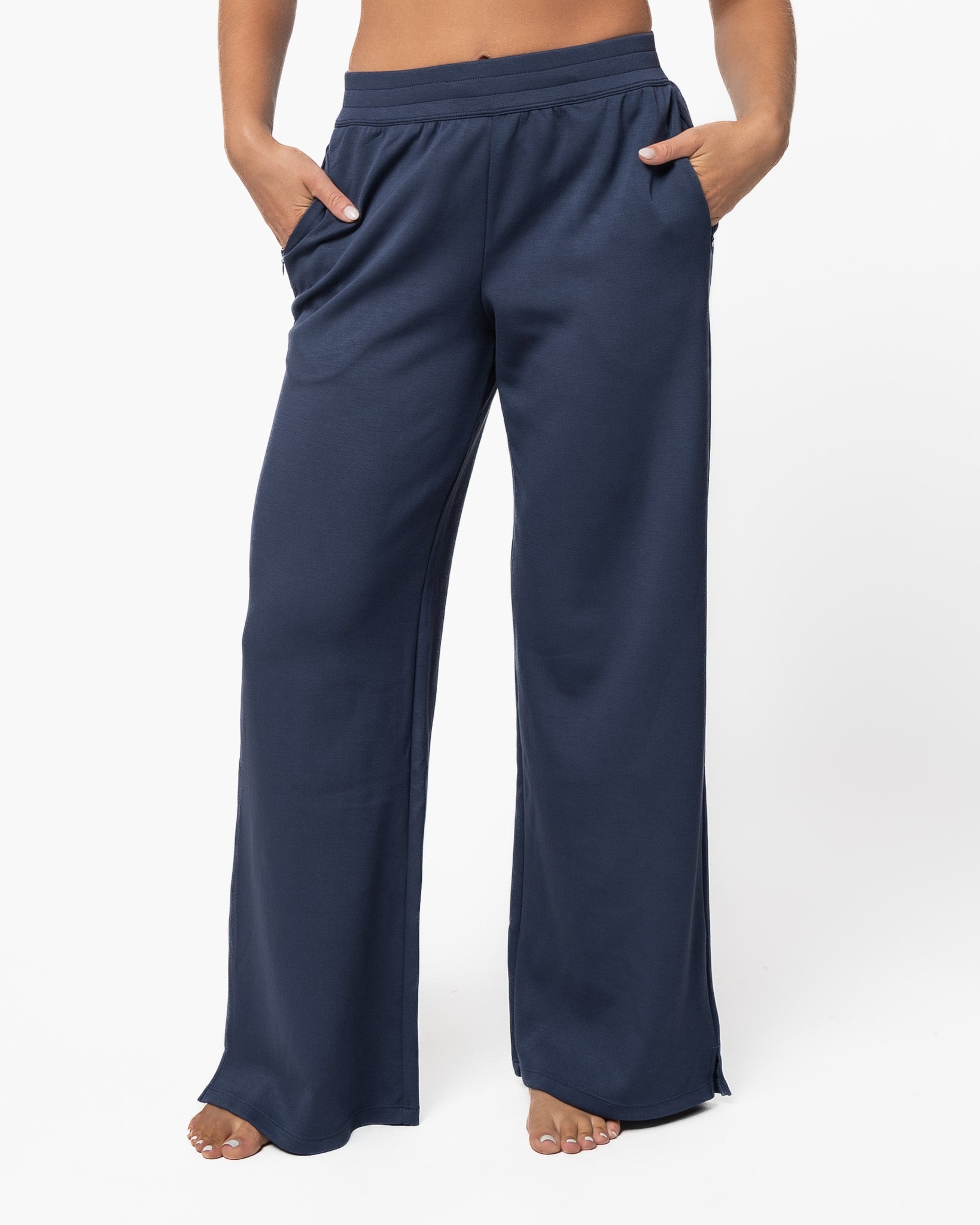 Experience the ultimate in comfort with our Wide Leg Drawstring Pants. Made from soft and lightweight structured stretch fabric, these pants are perfect for lounging in luxury. They feature an adjustable tie on the elastic waistband for a customized fit, slits on both ankles for a stylish touch, and two zippered pockets for secure and convenient storage. Elevate your relaxation wear with these versatile and chic pants.