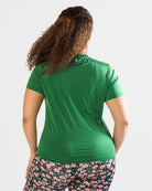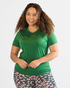 We've updated this tee based on customer feedback to feature a lower neckline and slightly larger arm holes!