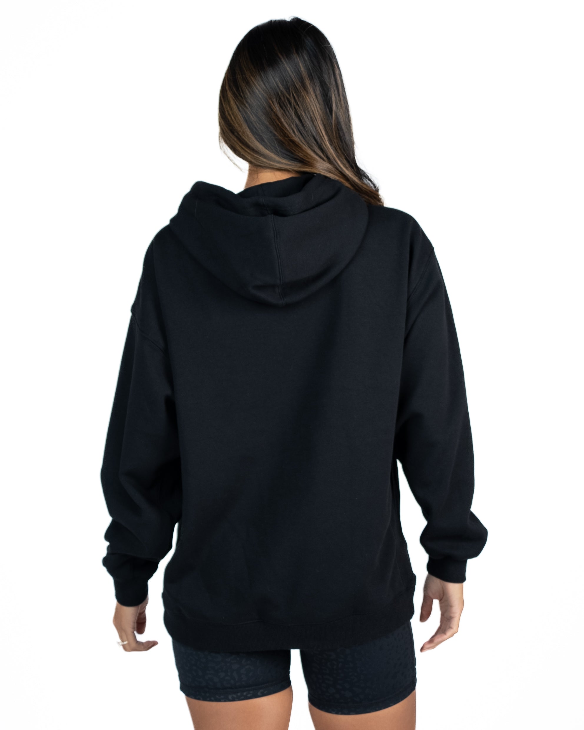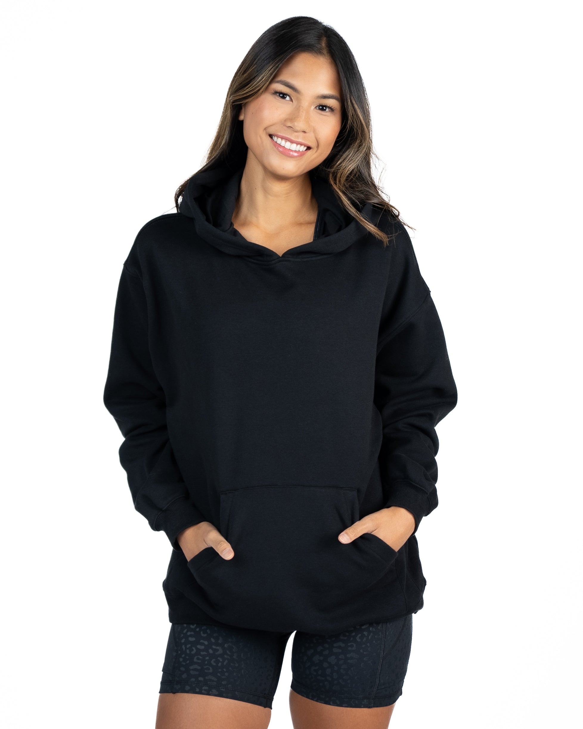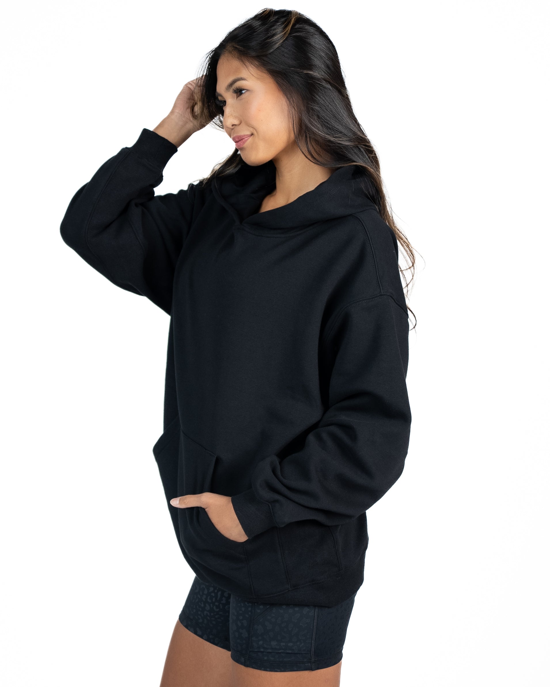 This classic hoodie offers a comfortable, slightly relaxed fit with cozy fleece lining. While the fit isn’t overly oversized, it provides just enough room for easy layering. The large kangaroo pocket and soft hood enhance its practicality, making it a perfect go-to for both workouts and casual wear.
