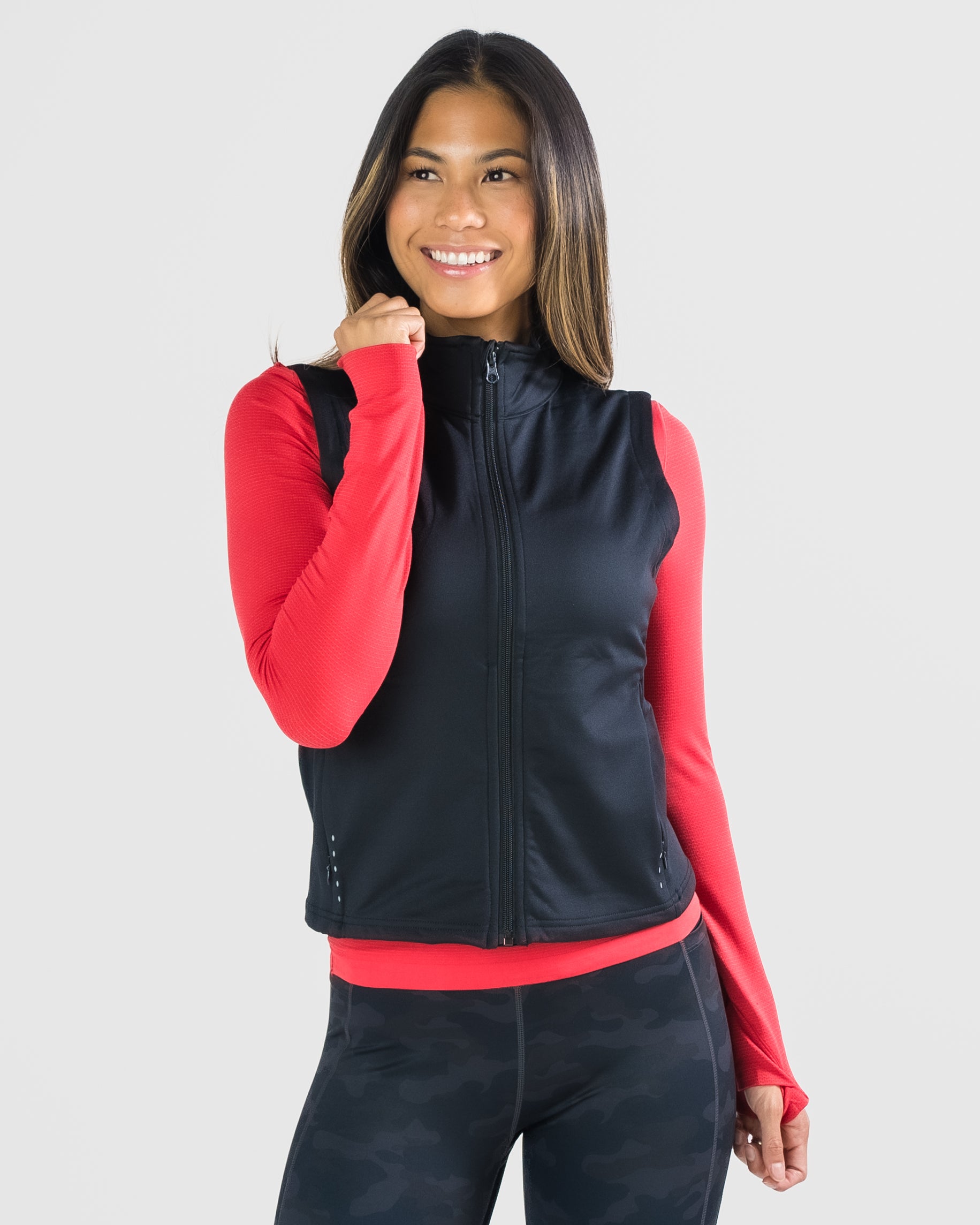 Stay ahead of the chill with our Thermal Running Vest, designed for runners who value comfort, functionality, and style. This vest provides lightweight insulation and flexibility, ensuring an unrestricted range of motion. Its reflective accents, including the petal detail near the zipper, enhance visibility during low-light conditions, making it ideal for early morning or evening runs. This sleek design is perfect for layering over your favorite running gear, combining aesthetics and performance.