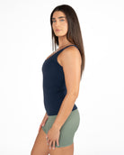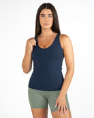 Crafted from our wide ribbed fabric, this tank feels soft and slightly compressive against your skin. It features a built-in shelf bra with removable pads, providing customizable support and seamless shape under any outfit. The flattering neckline frames the collarbone, enhancing your silhouette. Ideal for both active and leisurely days, the Shakti Ribbed Tank (Long) is your perfect pick for an effortlessly stylish, supportive wardrobe staple.
